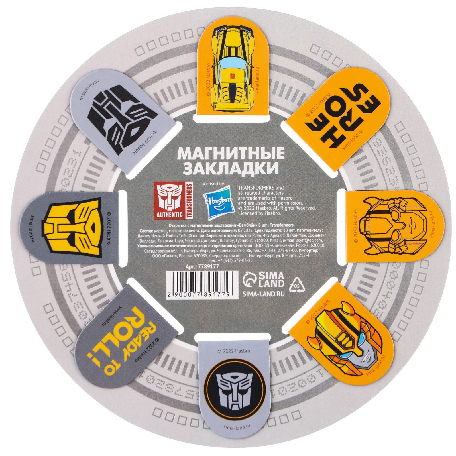 Магнитные закладки для книг, 8 шт. на открытке "Настоящему герою!", Трансформеры, 15.5x15.5x0.2 см., Hasbro, Китай