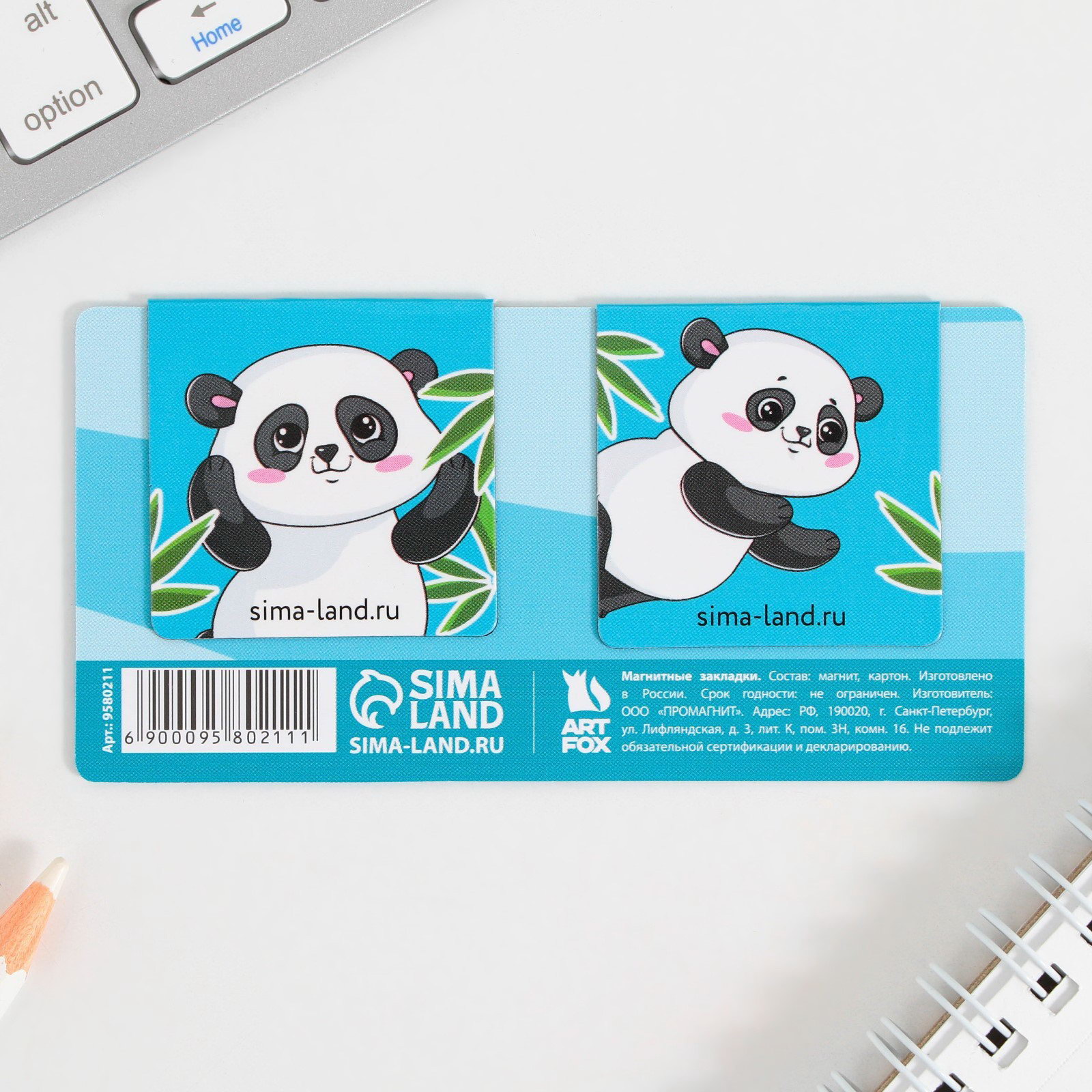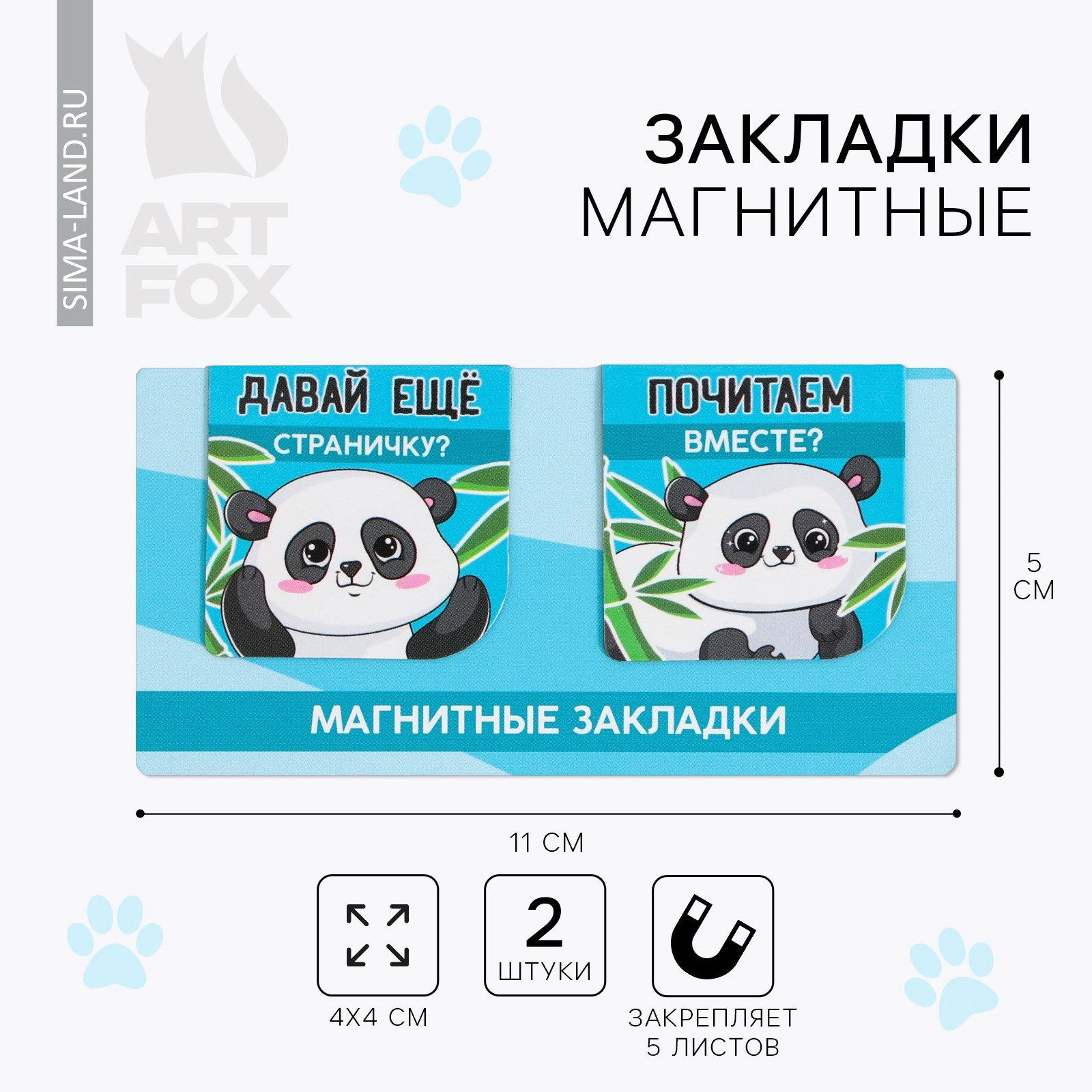 Закладки магнитные для книг, 2 шт. "Панда", ArtFox, Россия