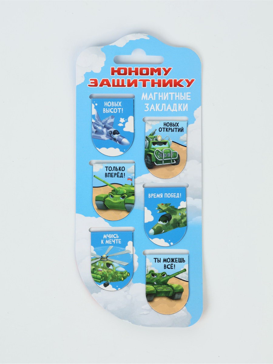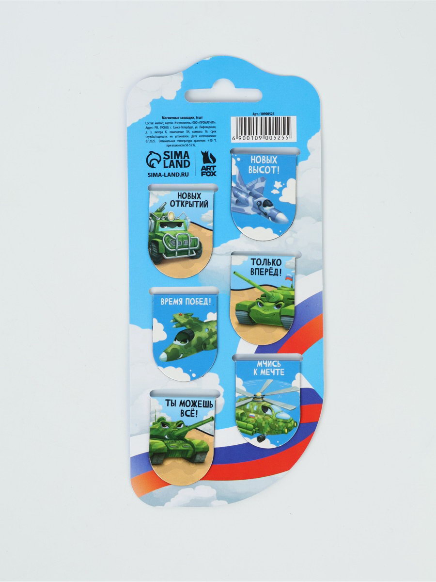 Закладки магнитные для книг, 6 шт "Юному защитнику", ArtFox, Россия