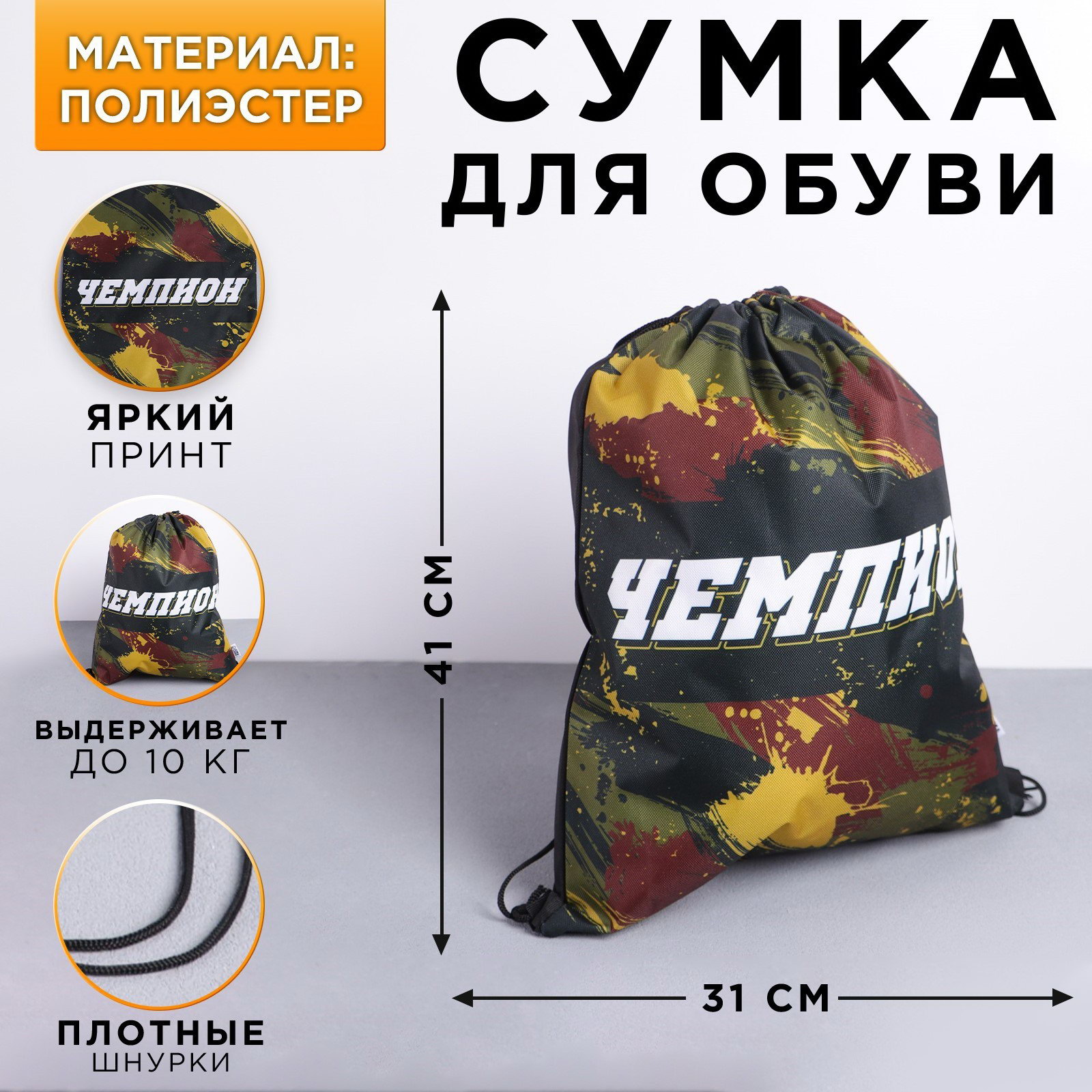 Мешок для обуви "Чемпион" полиэстер, размер 30 x 40 см, 34x41x1 см., ArtFox STUDY, Китай