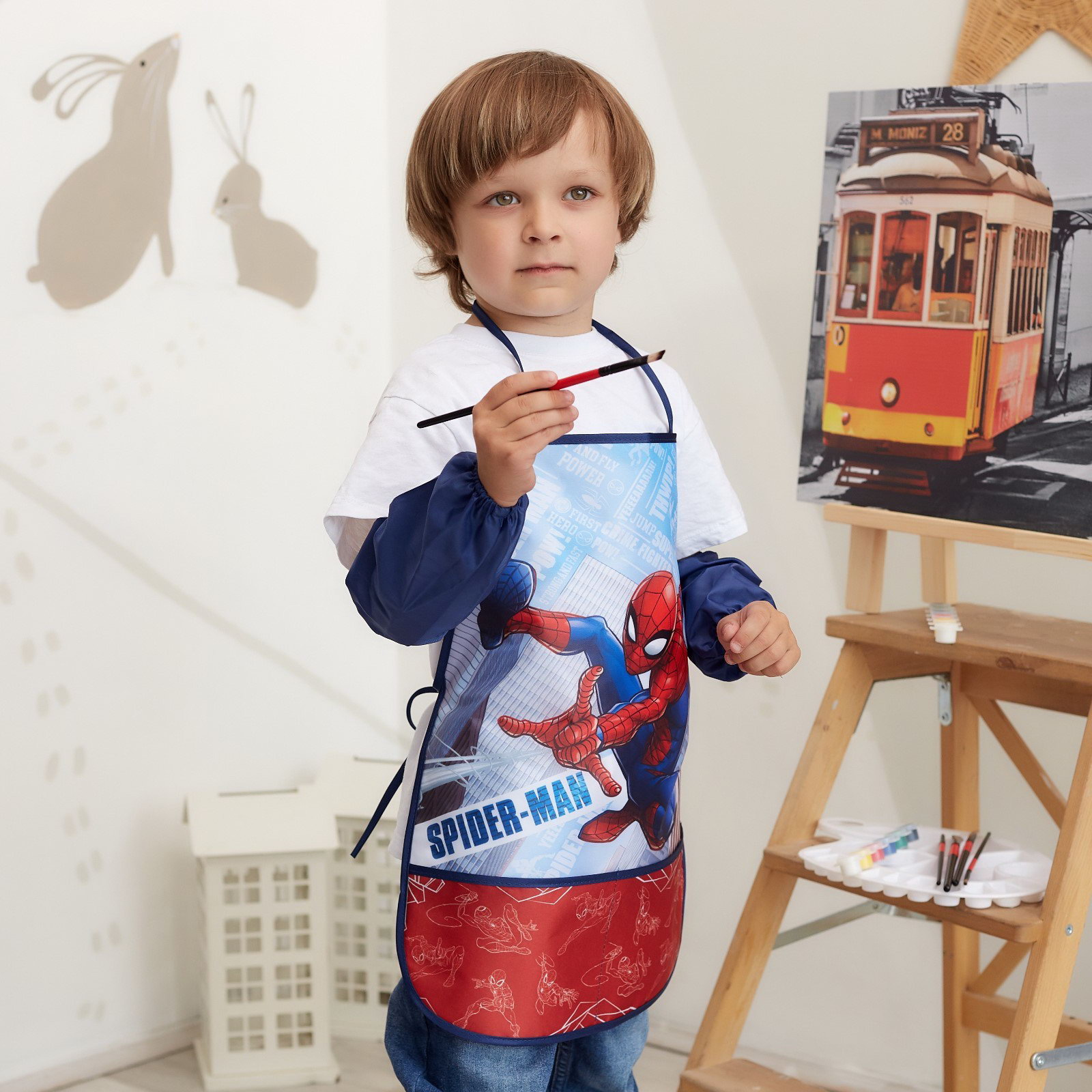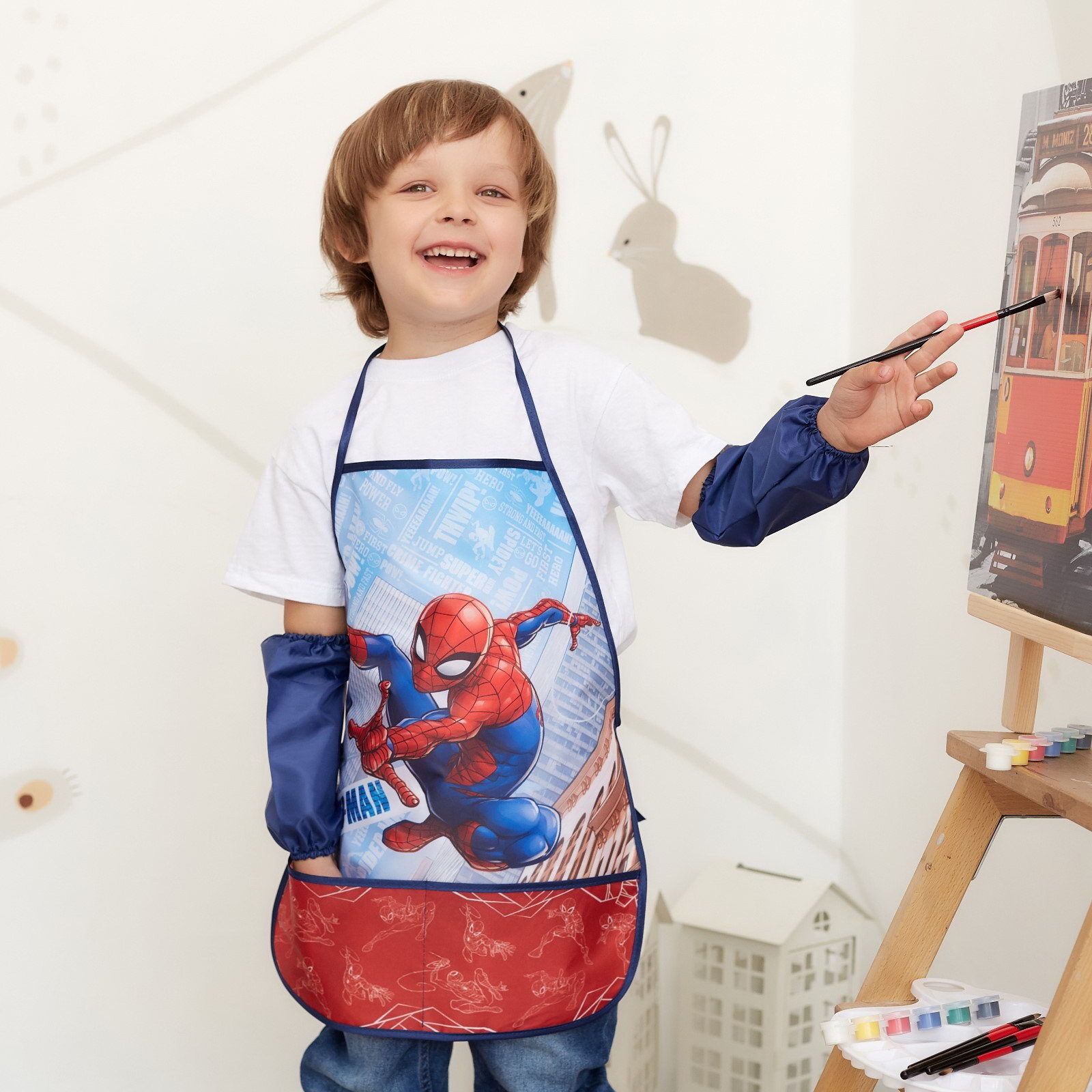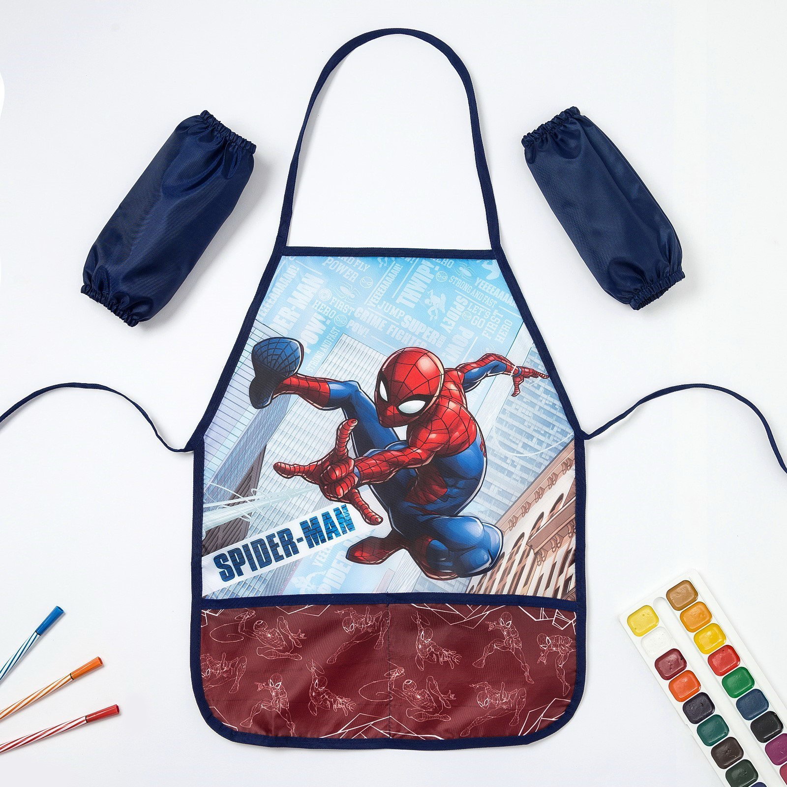 Фартук с нарукавниками детский "Человек-Паук", 49x39 см, 39x49 см., MARVEL, Россия