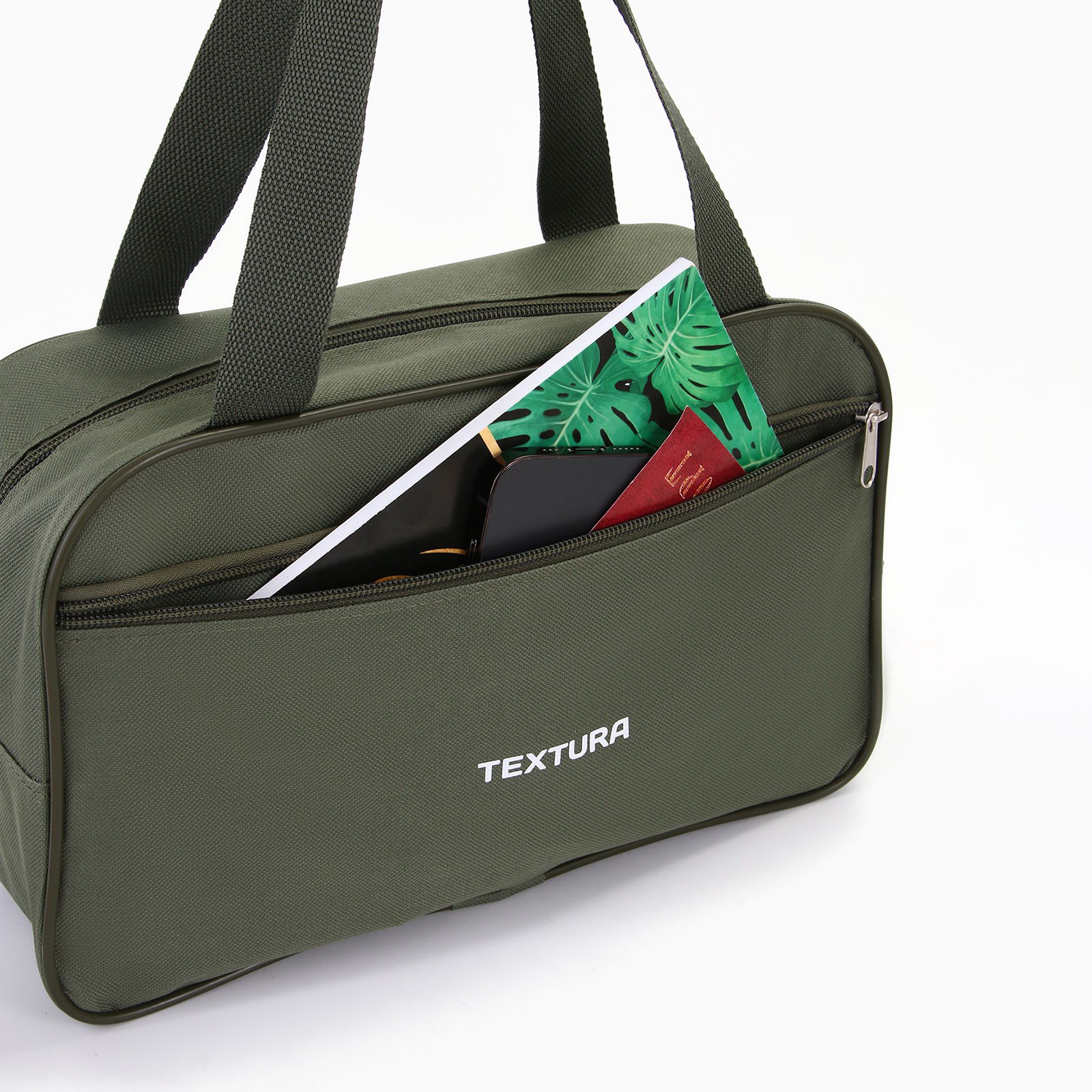 Сумка для обуви на молнии наружный карман, размер 33x10x20 см, хаки, 10x33x20 см., TEXTURA, Россия