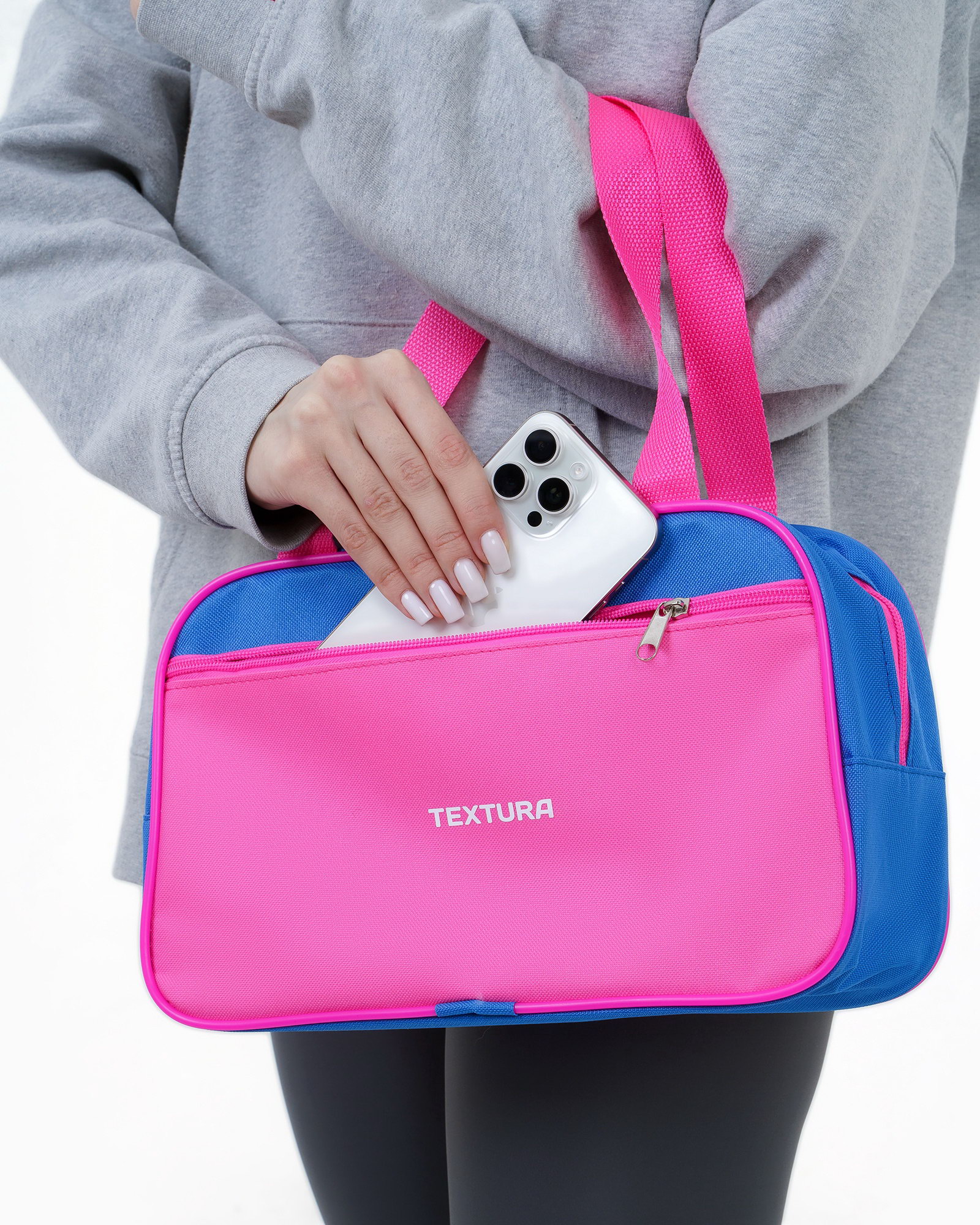 Сумка для обуви на молнии, наружный карман, цвет синий/розовый, 10x33x20 см., TEXTURA, Россия