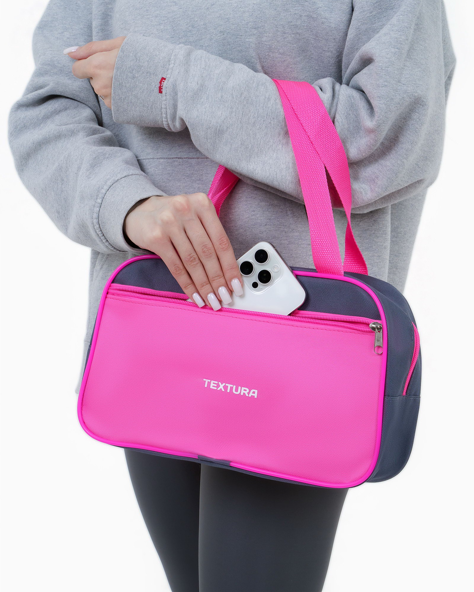 Сумка для обуви на молнии наружный карман, размер 33x10x20 см, серая/розовая, 10x33x20 см., TEXTURA, Россия