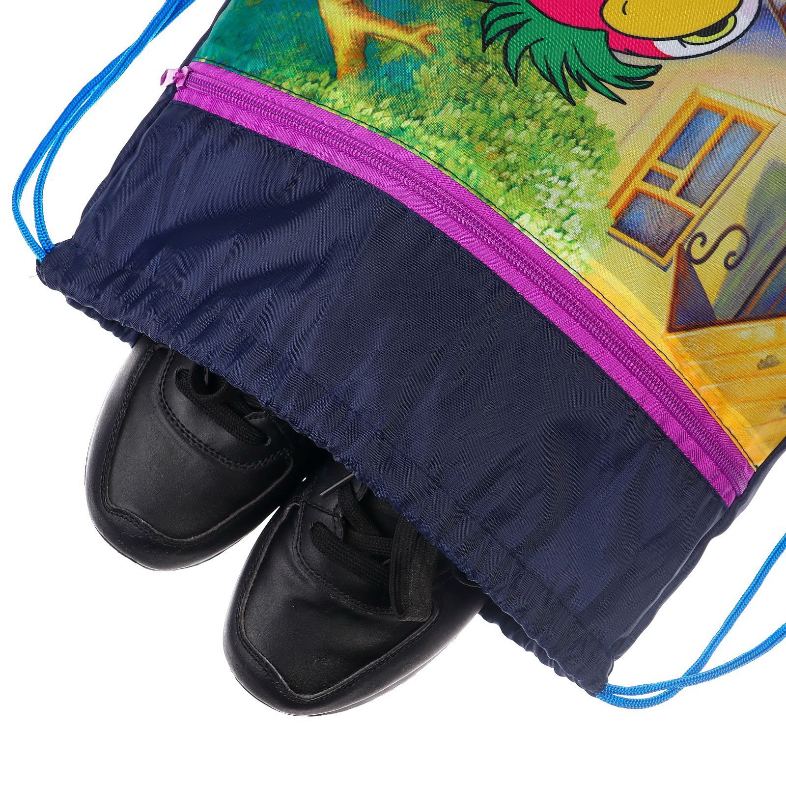 Мешок для обуви с карманом 420x350 мм "Попугай Кеша", мягкий полиэстер, плотность 210D, Союзмультфильм, Китай