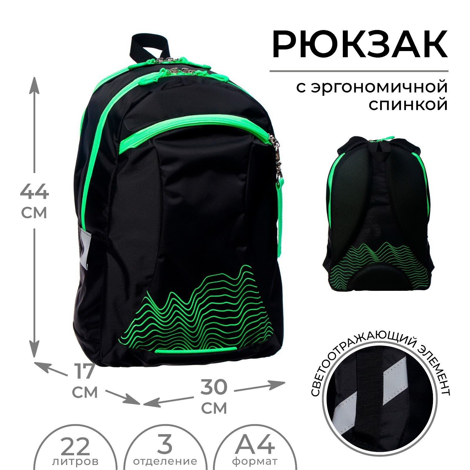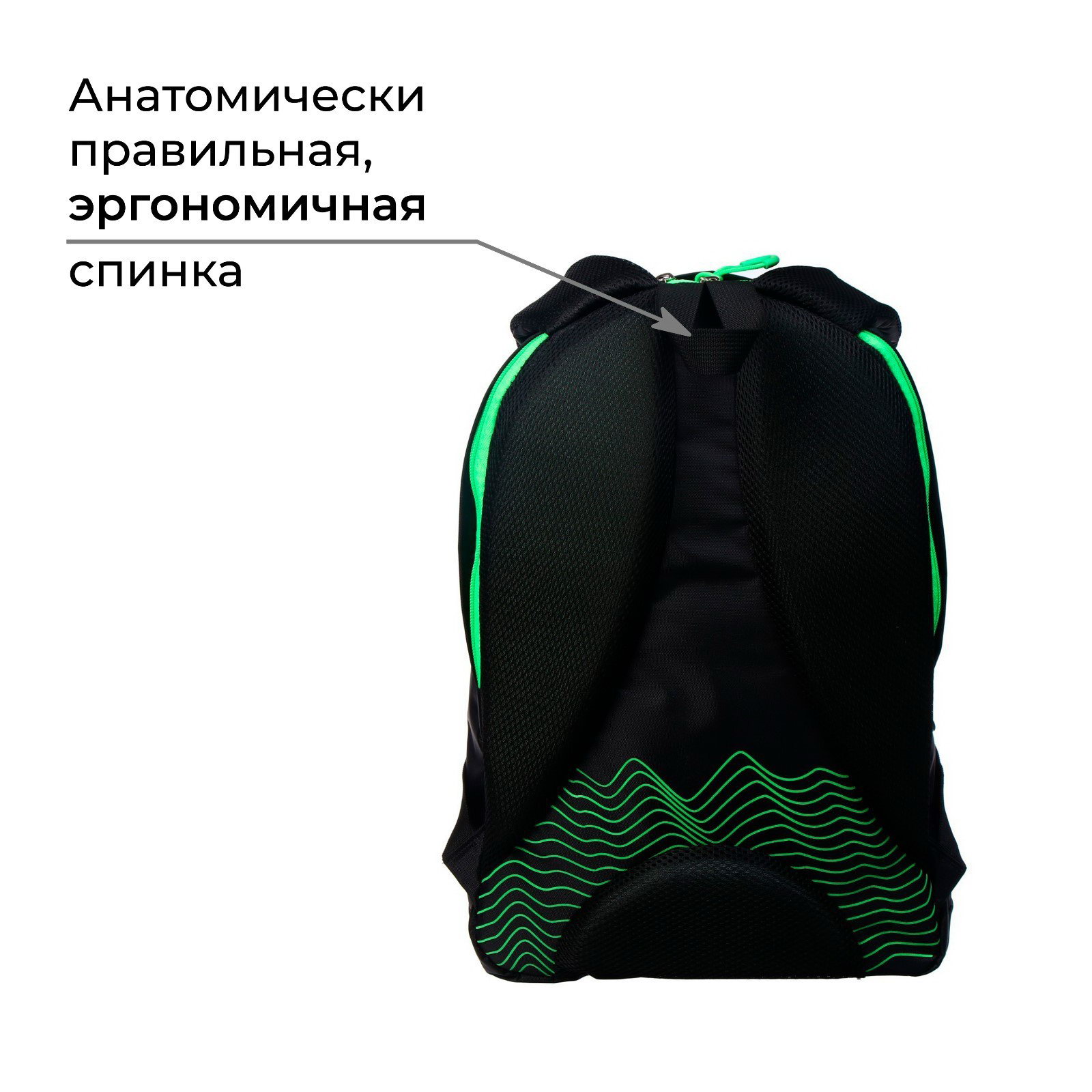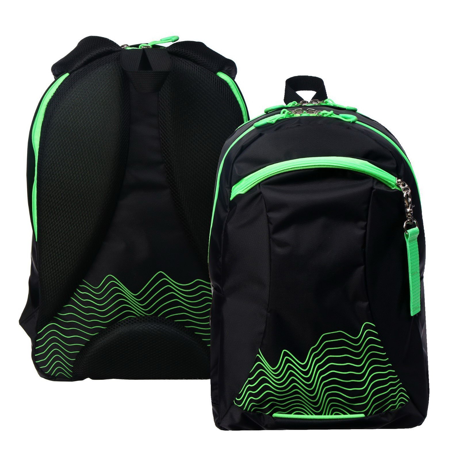 Рюкзак молодёжный, 44 x 30 x 17 см, эргономичная спинка, К "Волны", чёрный/зеленый, Calligrata, Россия