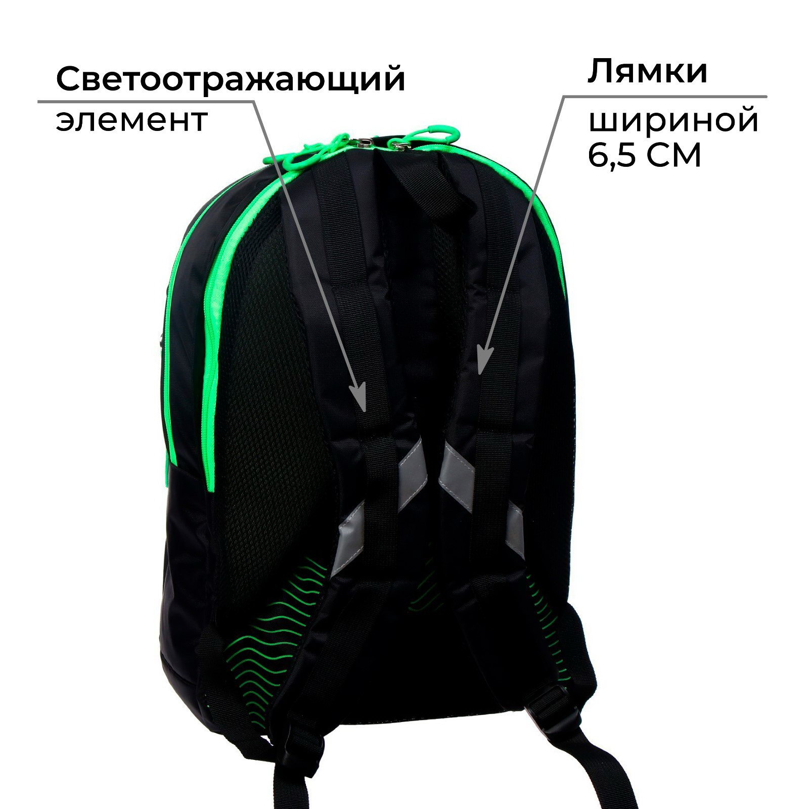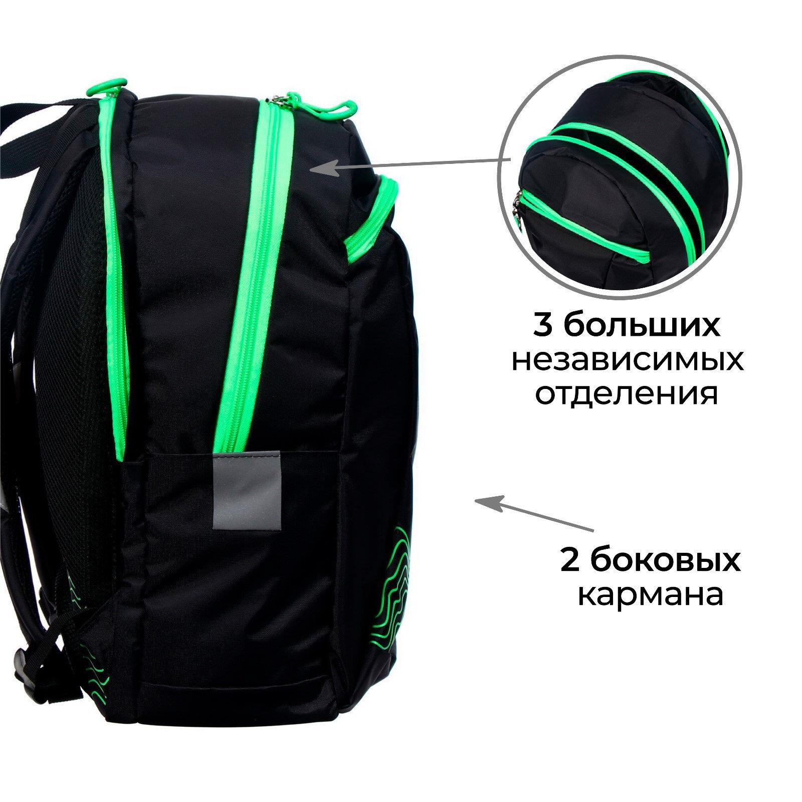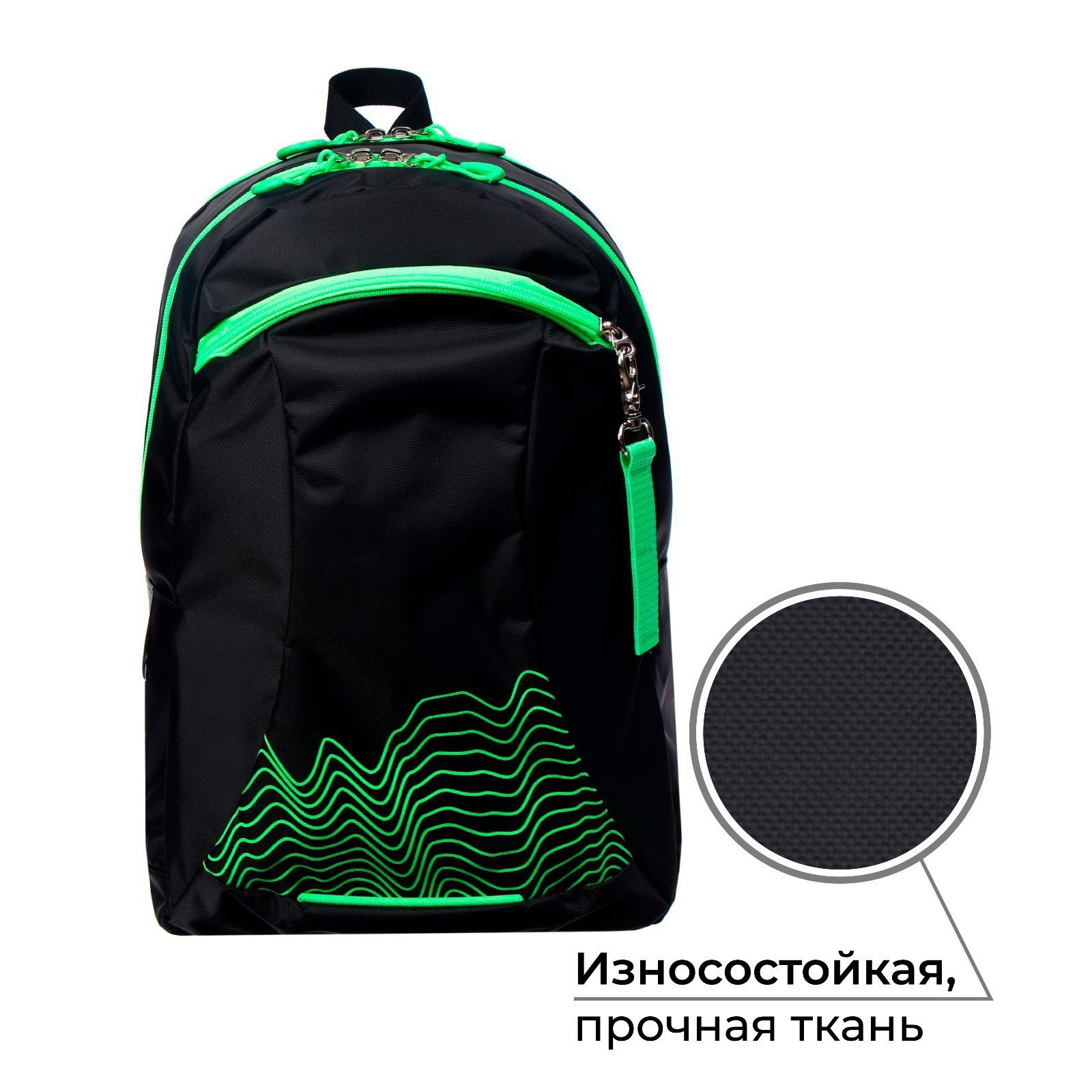 Рюкзак молодёжный, 44 x 30 x 17 см, эргономичная спинка, К "Волны", чёрный/зеленый, Calligrata, Россия