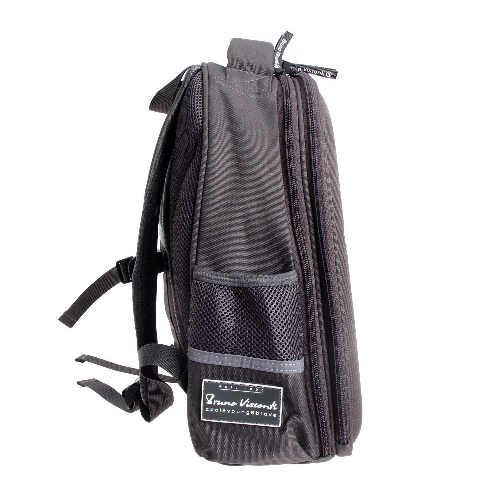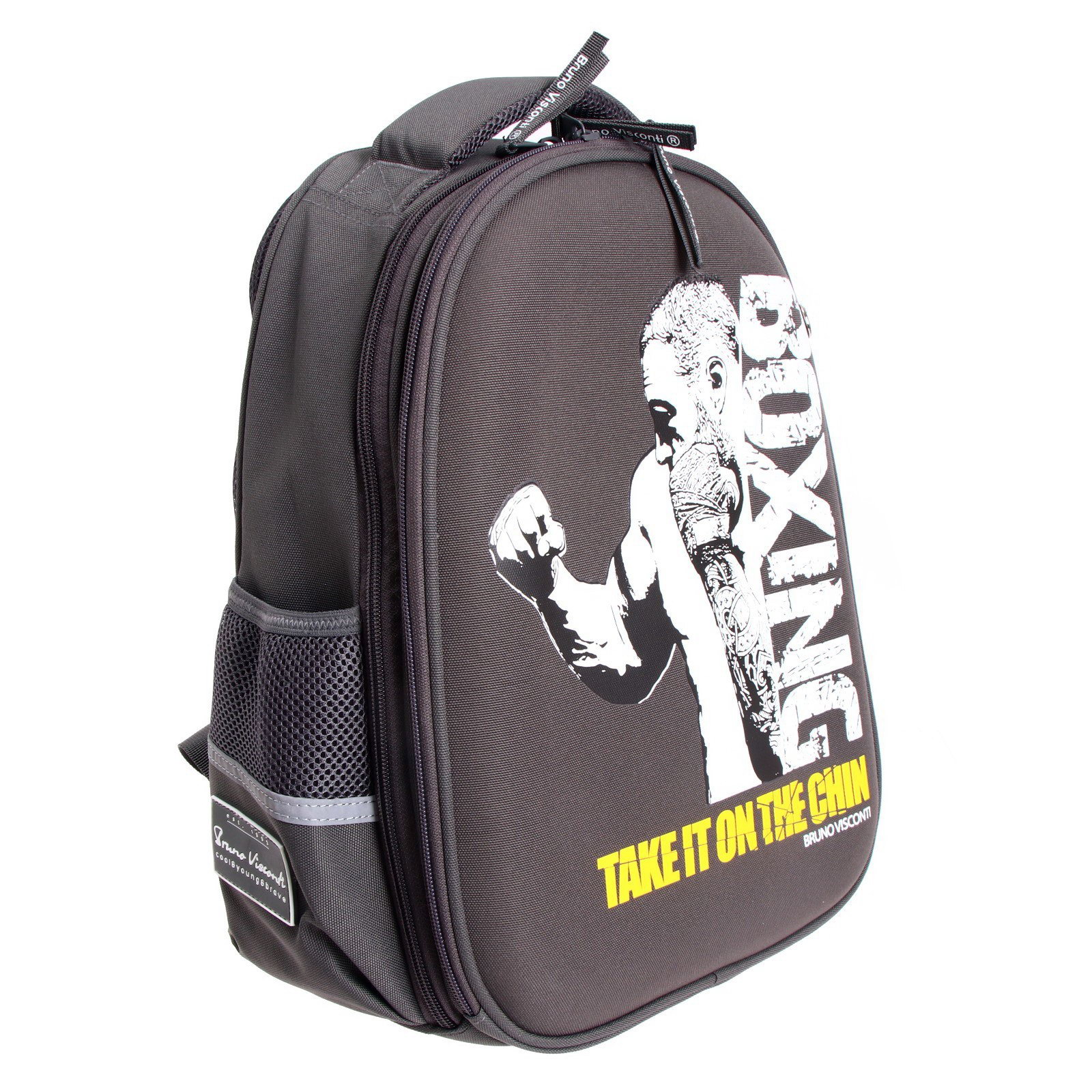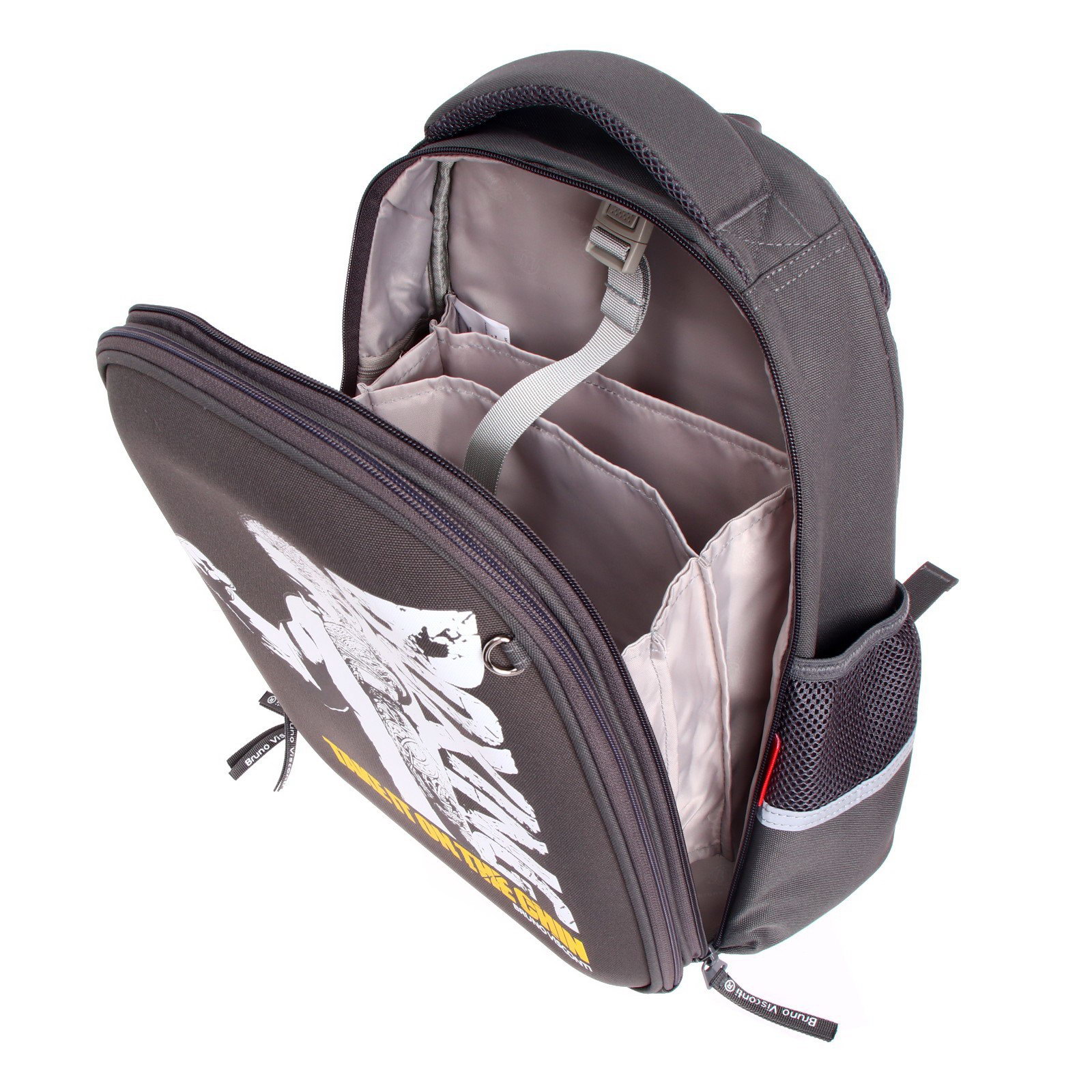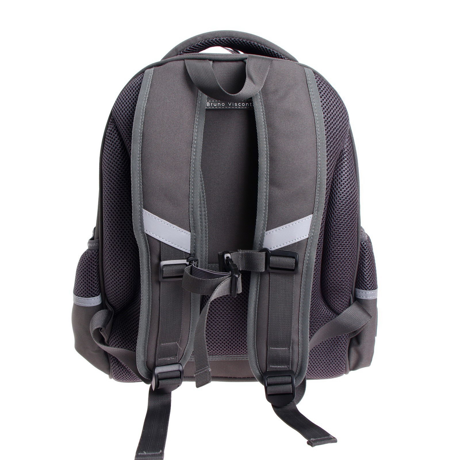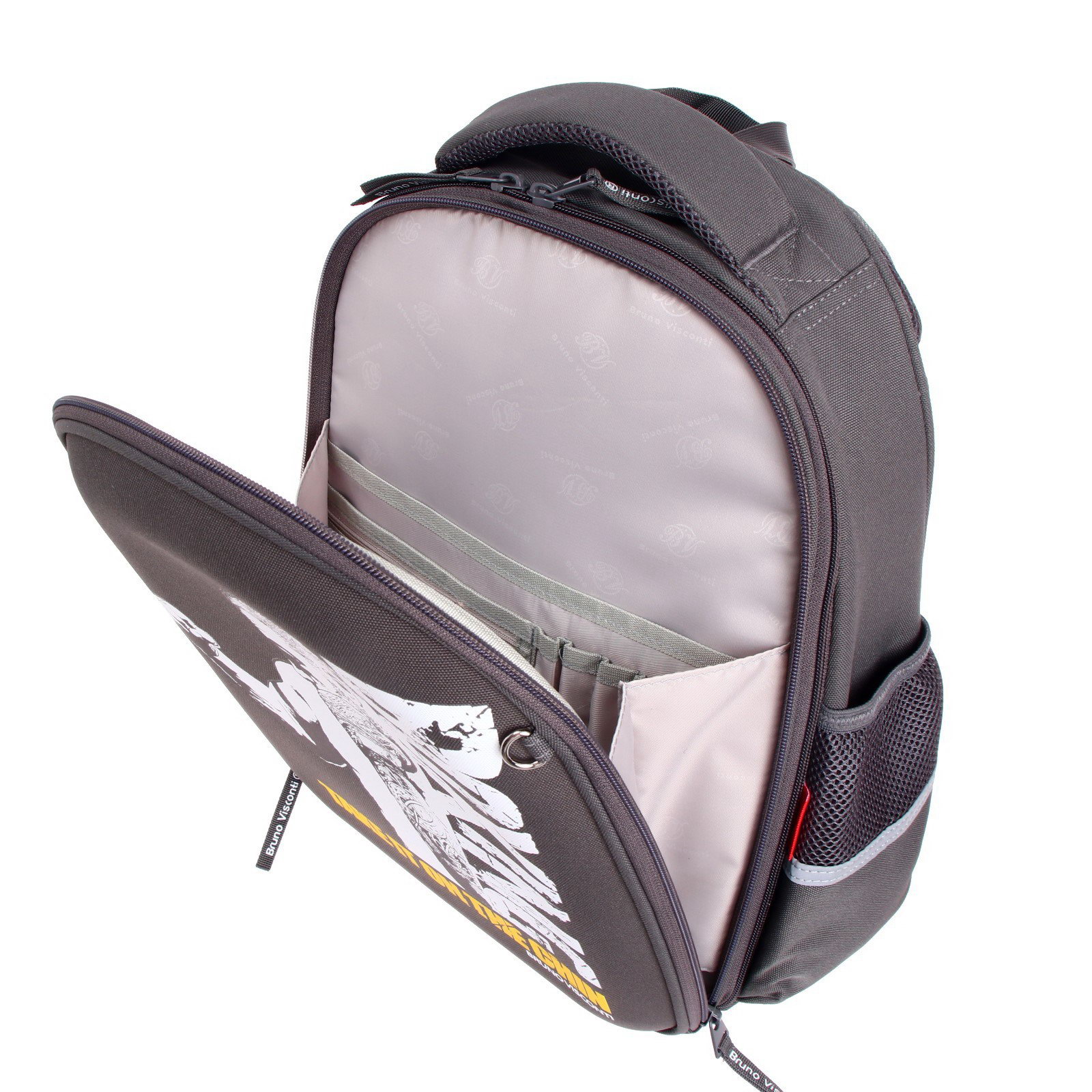 Особенности ранцев: Грудное крепление, Жёсткая эргономичная спинка, С наполнением Возраст: 1-5 класс, 5-11 класс Изображение: Люди, Спорт Размер упаковки: 30 x 20 x 38 см. Количество лямок: 2 Размер: Более 20 литров (большой) см tnved: 4202930000 Для кого: Для мальчика Цвет: Серый Тип: Рюкзак каркасный Лицензия: Нет Рисунок: Да Набор: Да Количество отделений: 2 Штрихкод на единице товара: Да Рюкзак с авторским дизайном, с использованием сложнейших современных технологий нанесения на ткань. Ткань водонепроницаемая, морозостойкая, с повышенной износостойкостью, грязеотталкивающая. Двунаправленные-реверсивные надежные 8-мм молнии с 5-см пуллером на замках, что позволяет легко открывать и закрывать рюкзак. Эргономичная спинка, комфортная при длительном использовании, вентилируемая, с анатомическими подушечками. Регулируемые лямки анатомической формы и ручка с усиленным креплением готовы к любым нагрузкам. Износостойкая фирменная подкладка BRUNO VISCONTI, тщательно подобранная и сочетающаяся с дизайном и цветом рюкзака. Рюкзак имеет два основных отделения: первое отделение содержит органайзер с молнией и карман-сеточку, второе отделение состоит из трех частей с двумя разделителями с фиксирующим ремнем и дополнено карманом на молнии для карточки. Рюкзак снабжён четырьмя светоотражающими элементами. Усиленное дно рюкзака оснащено резиновыми ножками, защищающими от загрязнения и влаги.