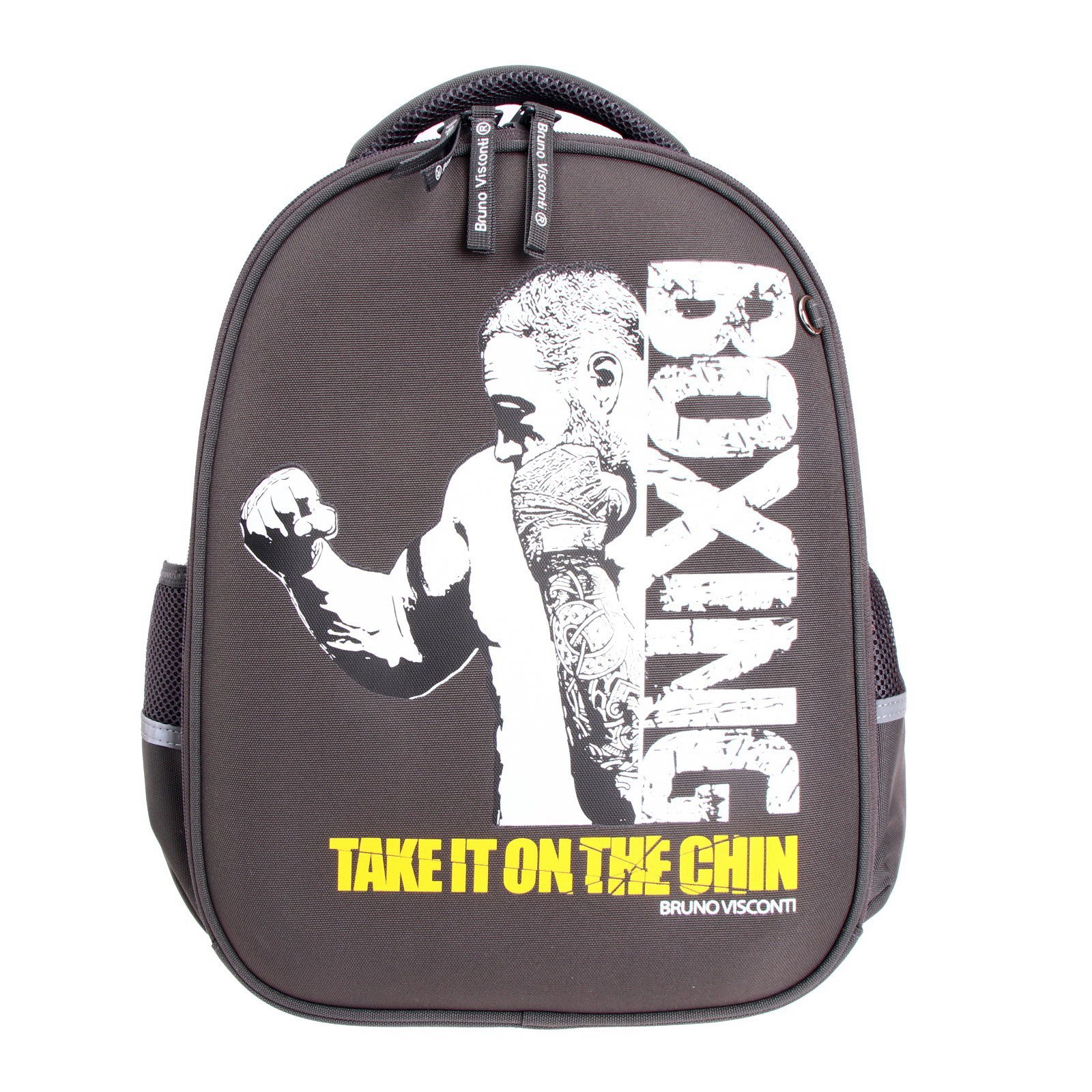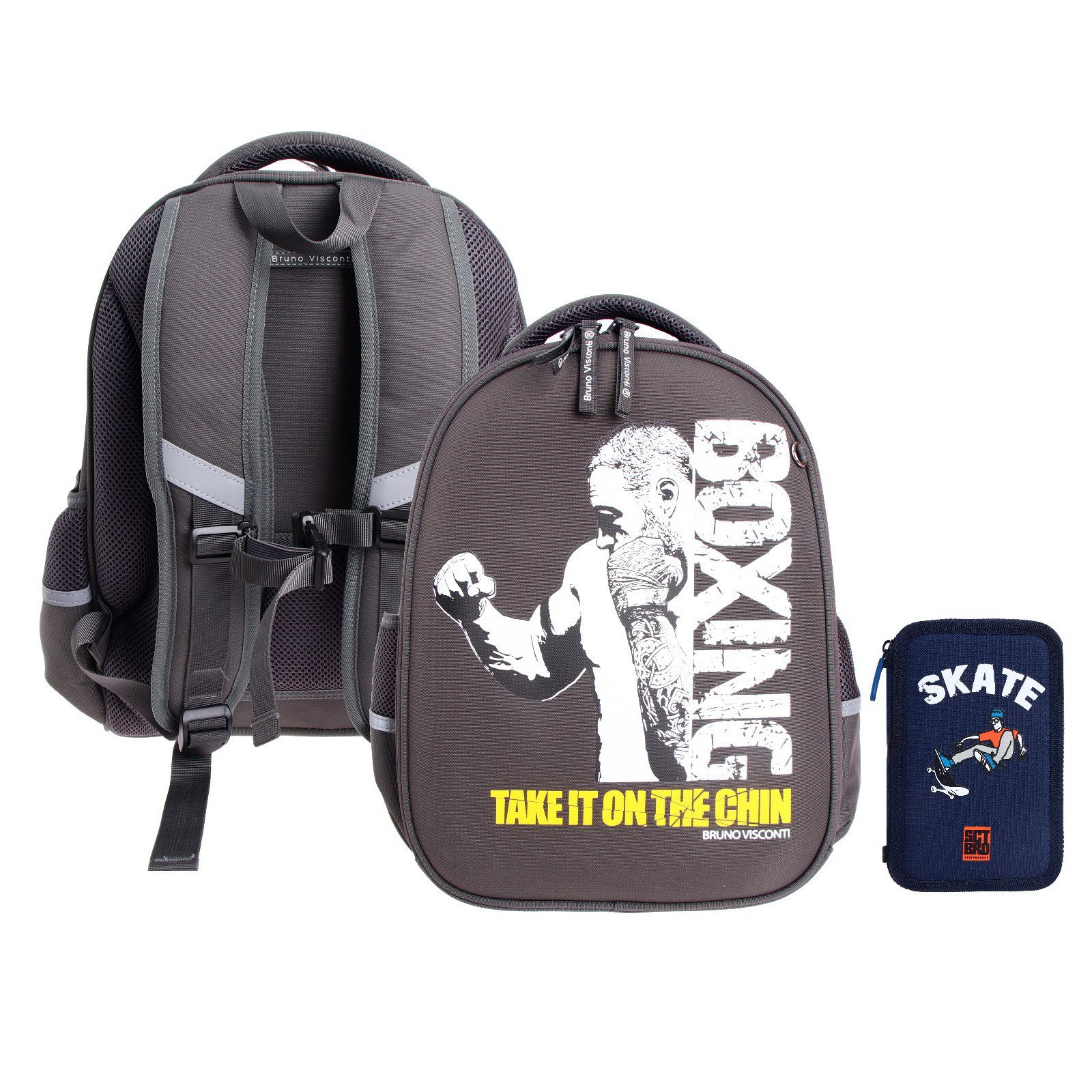 Рюкзак каркасный 38 x 30 x 20 см, + пенал, Bruno Visconti "Бокс" тёмно-серый, BrunoVisconti, Китай