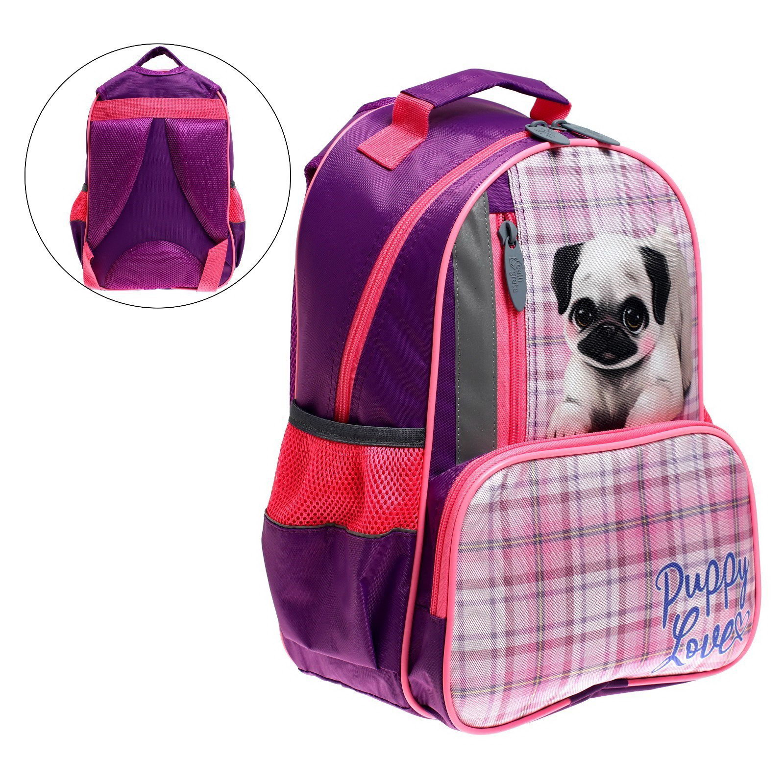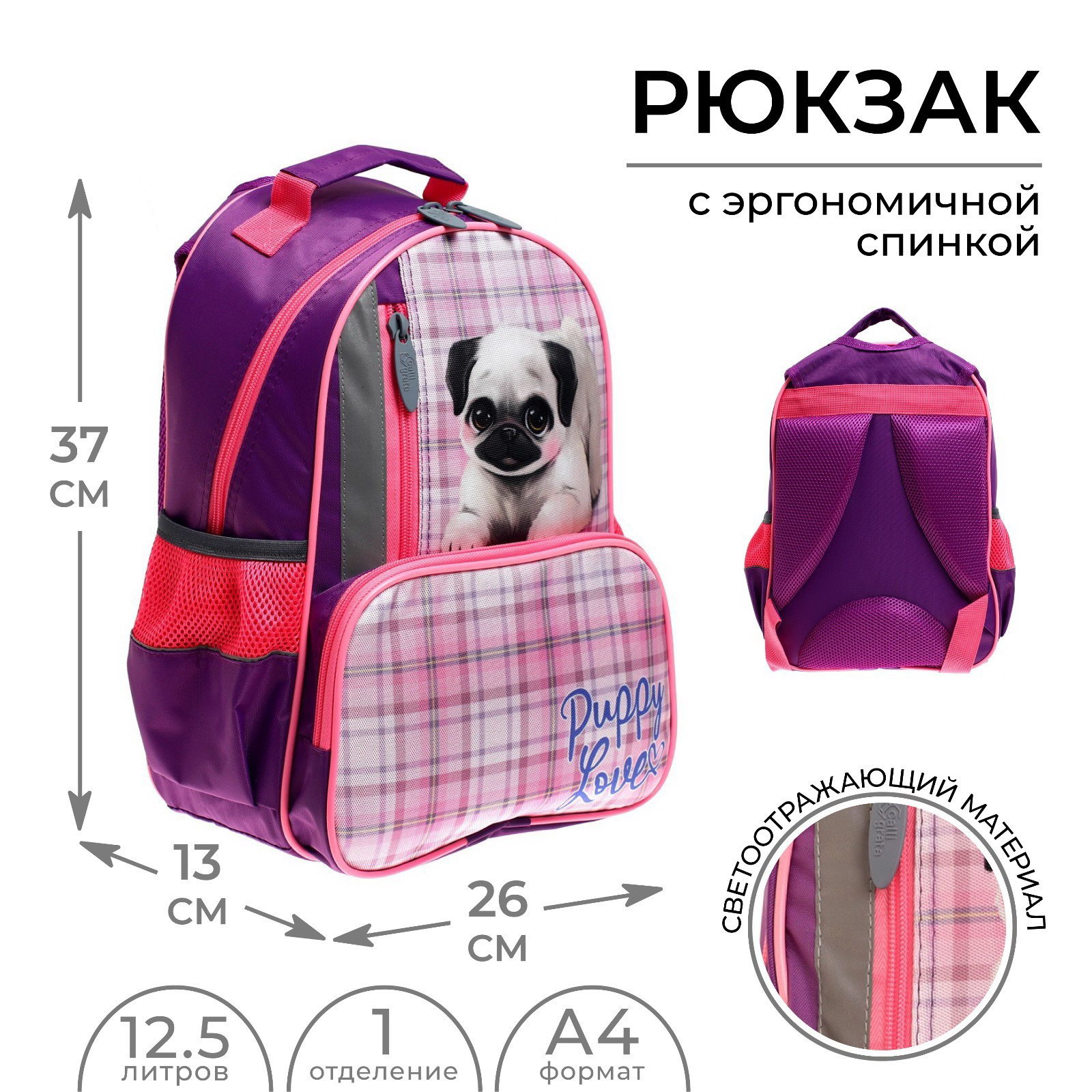 Рюкзак школьный, 37 x 26 x 13 см, эргономичная спинка, ОРТ "Мопсик", Calligrata, Россия