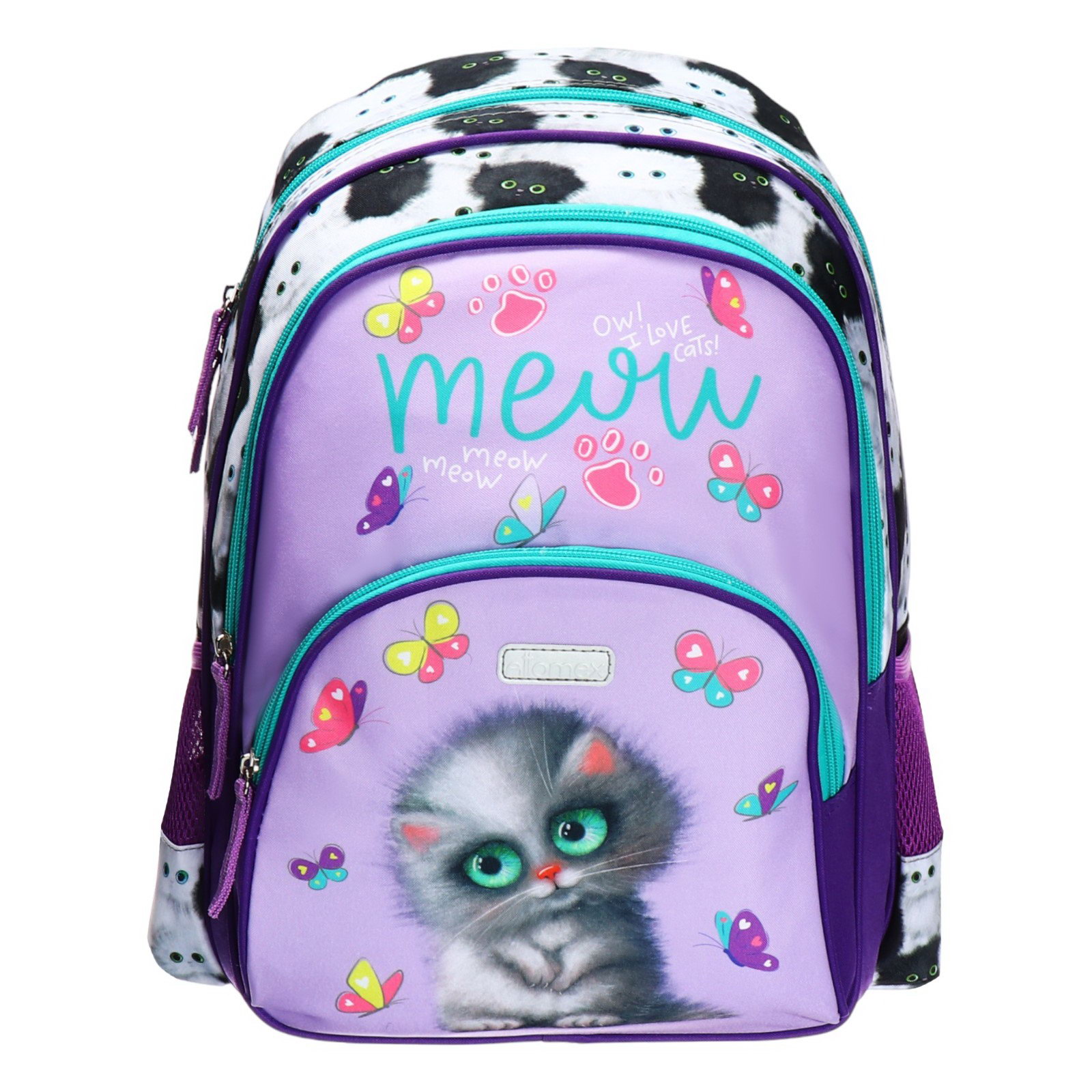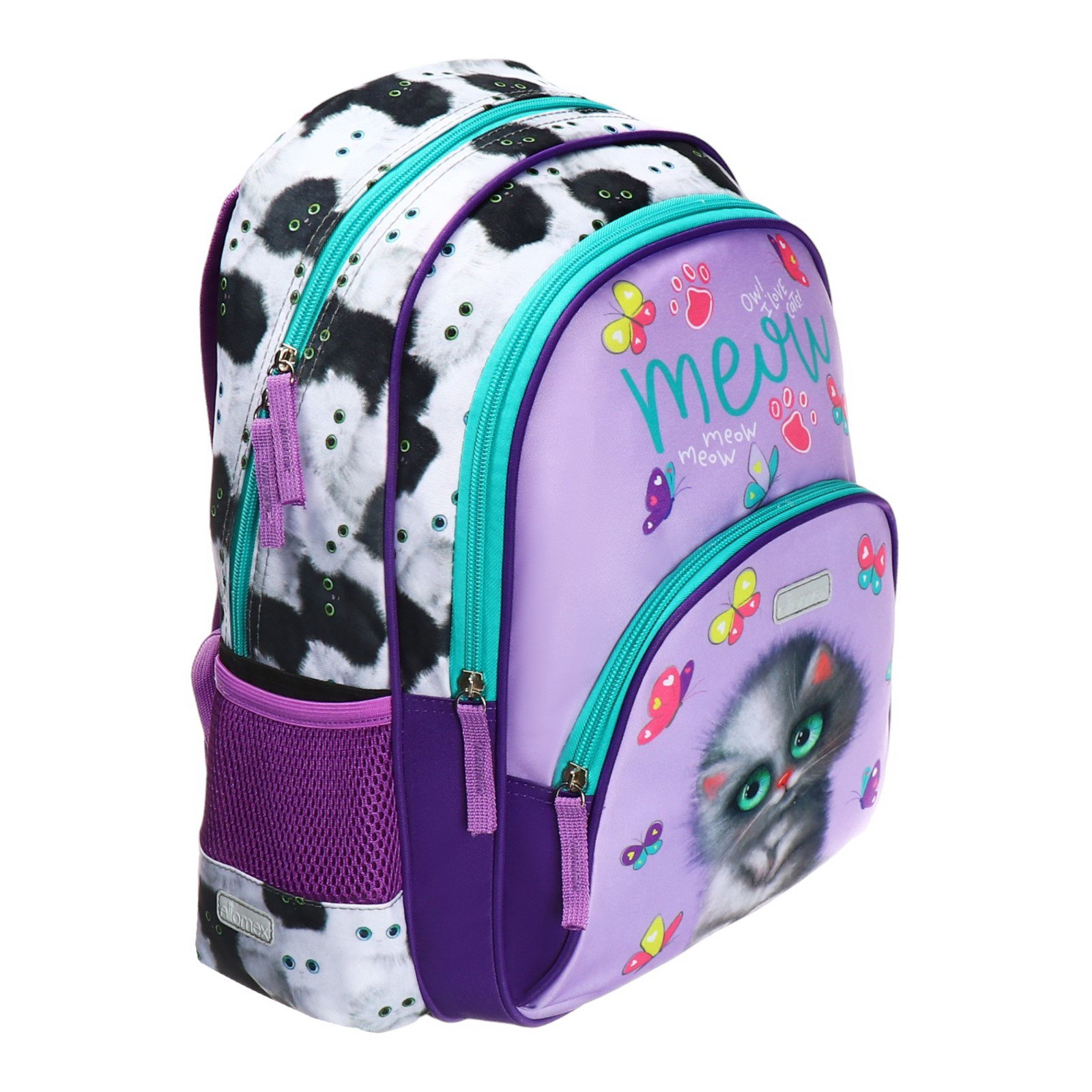 Рюкзак школьный 38x27x17, эргономичная спинка, deVENTE Basic, Meow Cat, сиреневый, 7033438, Attomex, Китай