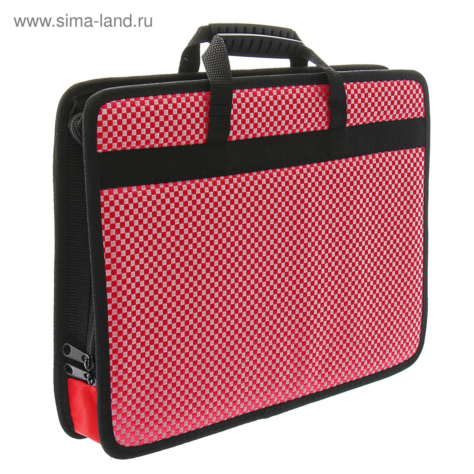 Папка с ручками каркасная, текстиль, А4, 50 мм, 330 x 260 мм, "Тихвин", "Шашки", красная, Calligrata, Россия