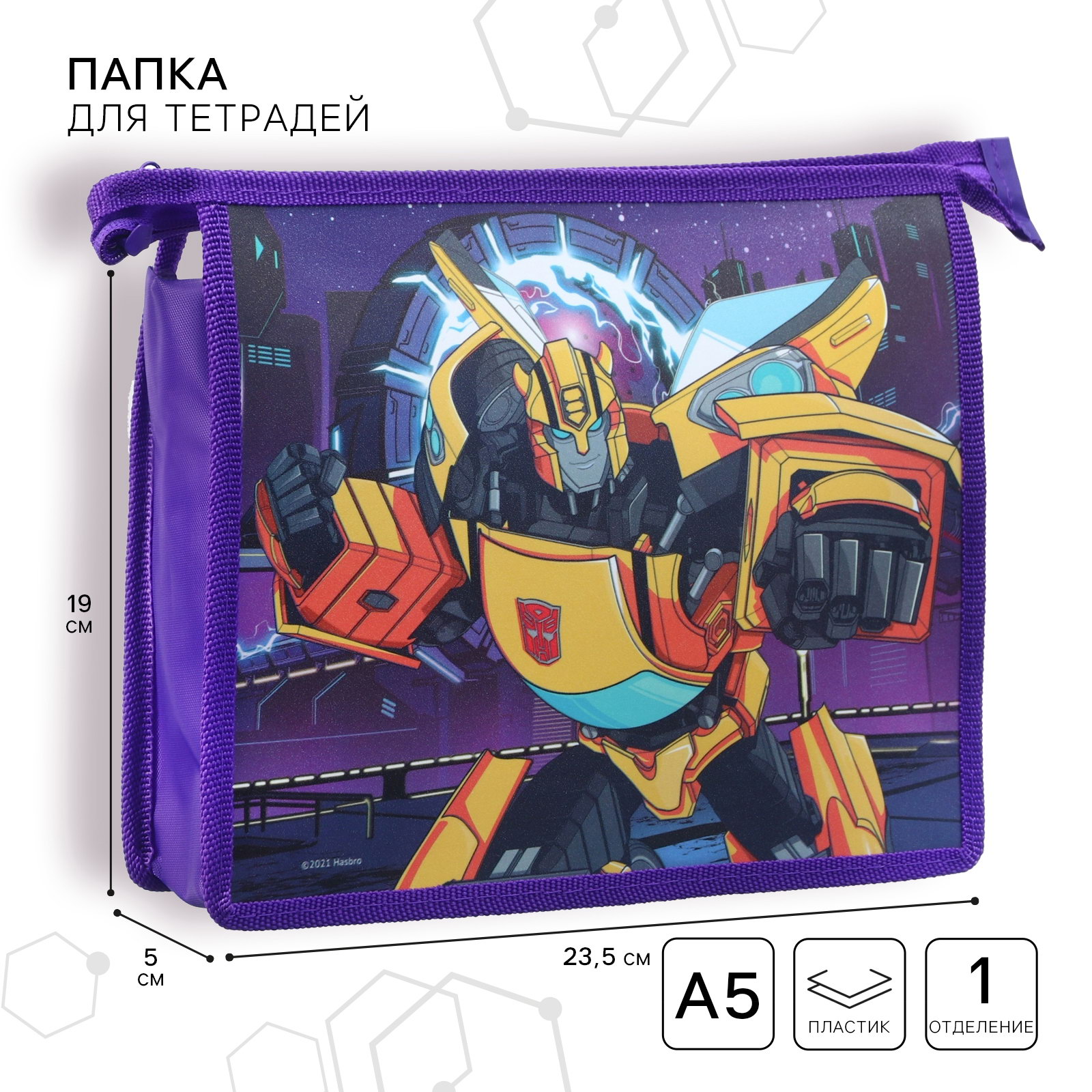 Папка пластиковая для тетрадей А5, на молнии, Трансформеры, Hasbro, Китай