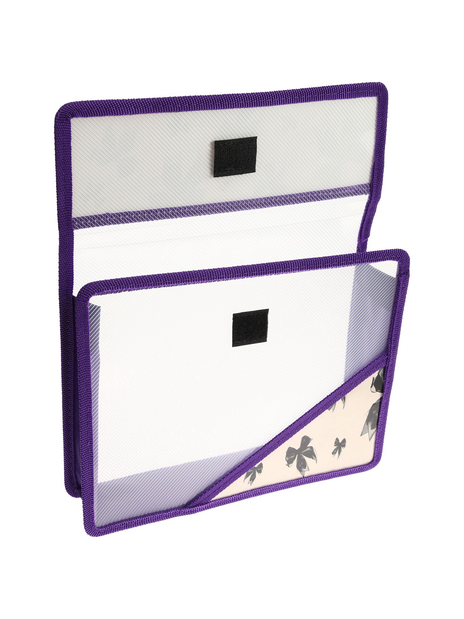 Маленькая папка для маленьких сокровищ У девочек всегда есть множество важных мелочей: наклейки, раскраски, блокнотики, карандаши. Эта папка идеальное место для их хранения. Компактный формат А5 удобно помещается в детский рюкзак, не занимая много места. Прозрачный пластик позволяет сразу увидеть, что внутри, не открывая папку. Милые бантики на обложке создают уютное, радостное настроение. Застёжка на липучке проста в использовании даже для самых маленьких: легко открывается и надёжно закрывается. Ширина 50 мм позволяет хранить не только тонкие тетради, но и книжки, альбомы и пеналы. Это выбор для родителей, которые хотят приучить дочку к порядку с малых лет, и для девочек, которые любят красивые вещи и ценят своё пространство. | ||