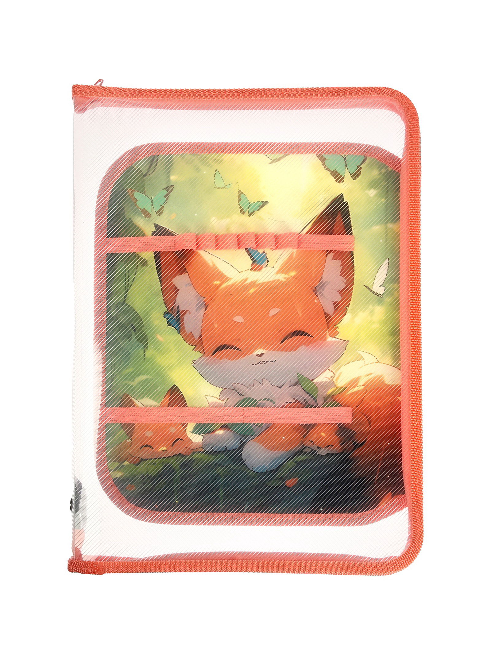 Папка для труда А4 "Лисята в лесу", молния вокруг/откидная планка, Пчёлка, Россия