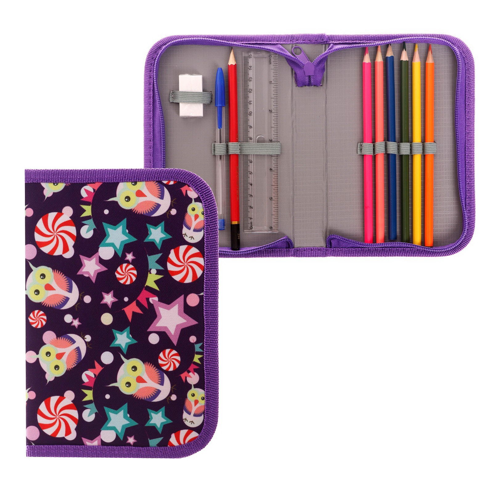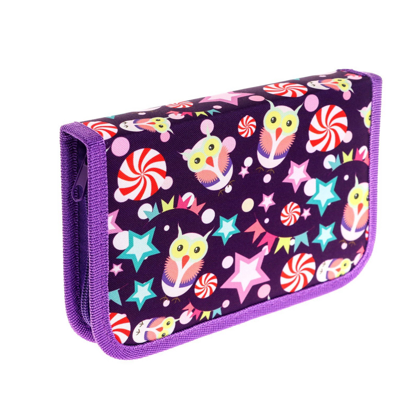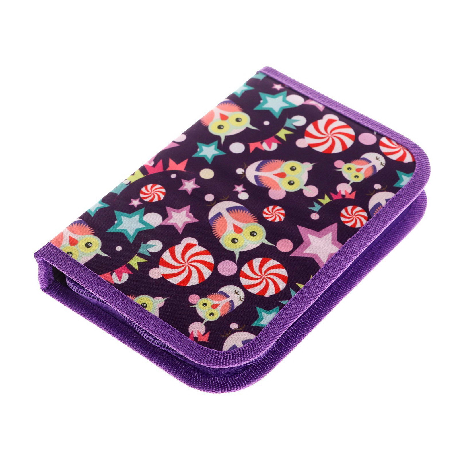 Пенал школьный на молнии, ткань, 1 секция, с наполнением, 13 x 19.5 см, Совы, 3x19.5x13 см., Calligrata, Китай