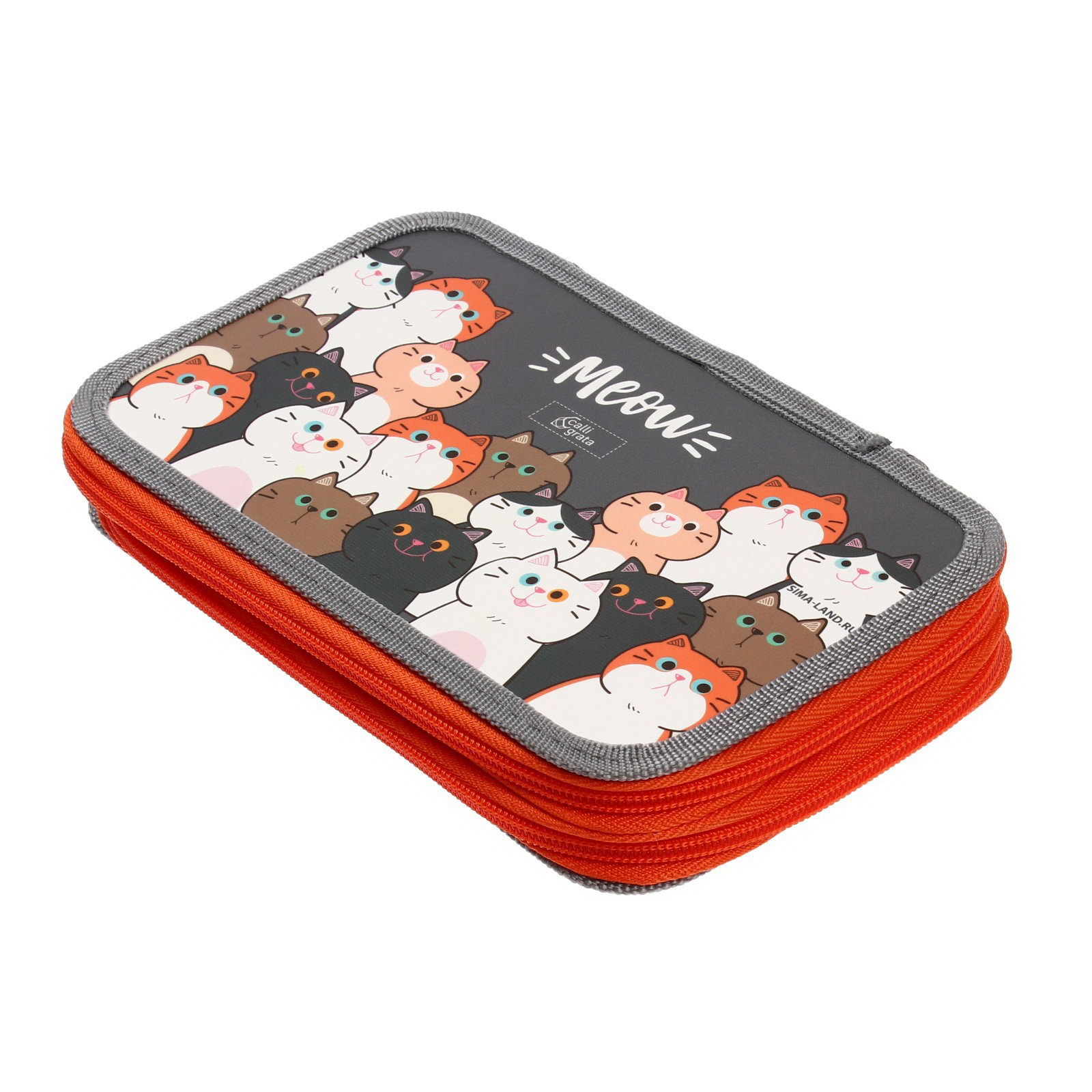Пенал школьный, 2 секции, 12.5x20.5x4 см"Коты", Calligrata, Россия