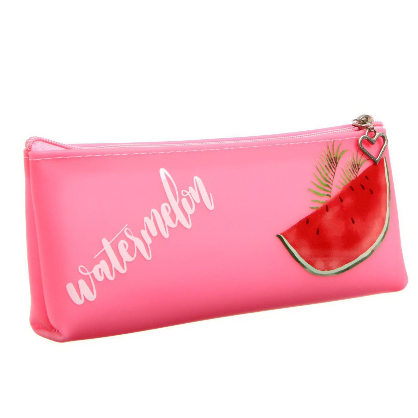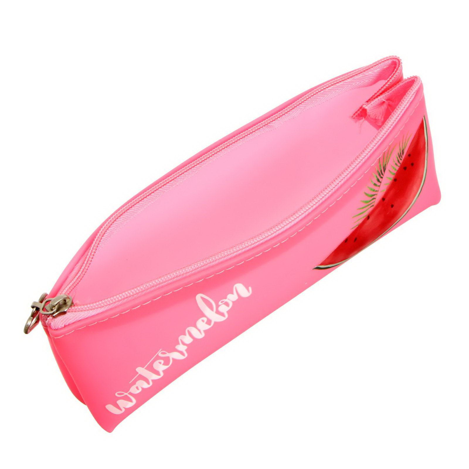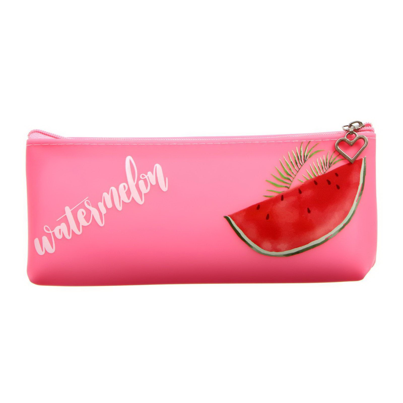 Пенал школьный, на молнии силиконовый "Фрукты", розовый, Китай
