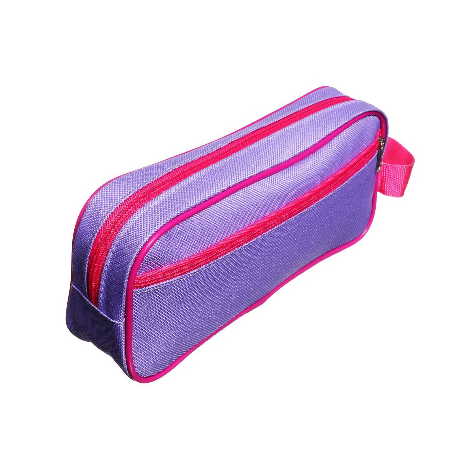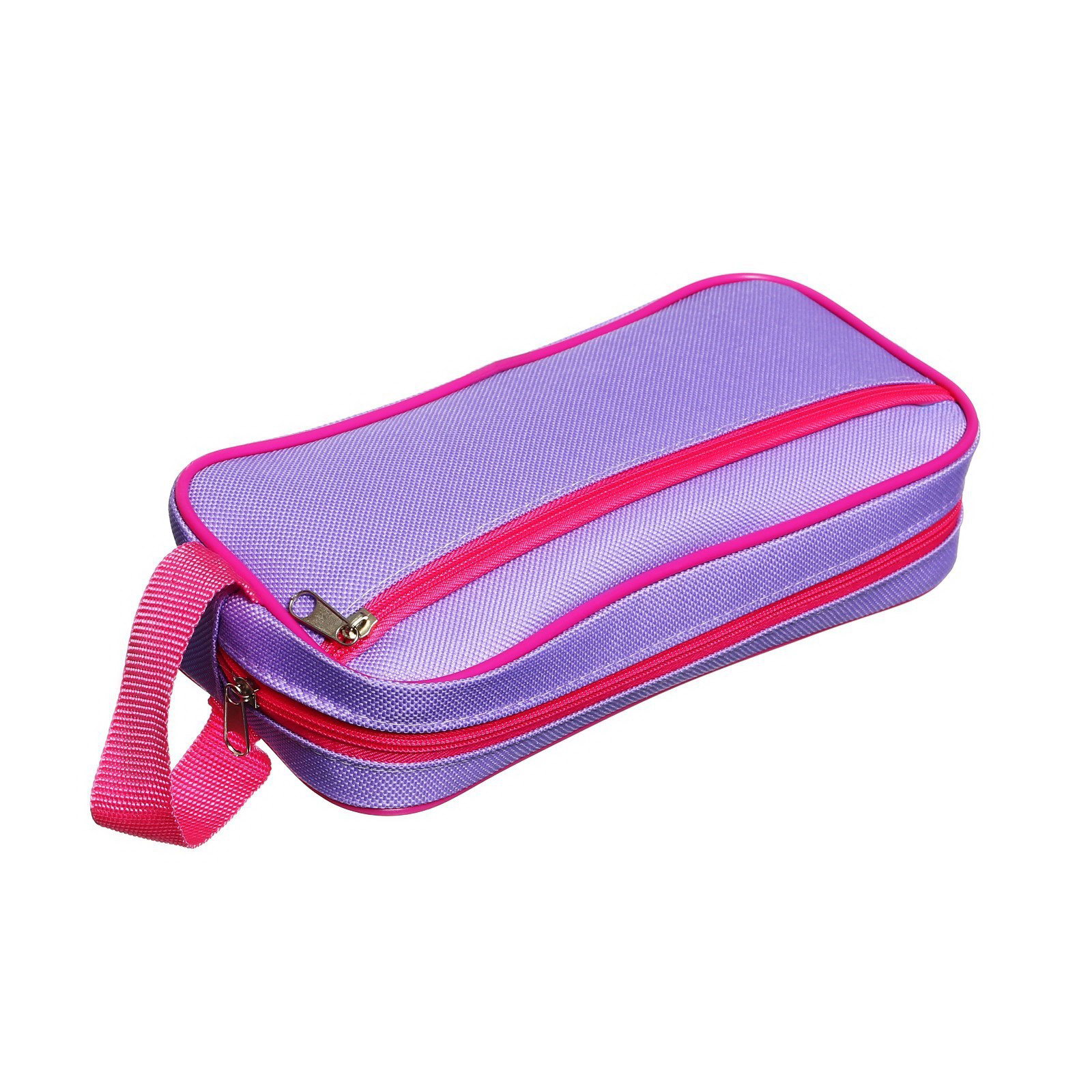 Пенал мягкий 2 отделения, 100 x 200 x 70 мм, объёмный, боковой карман, с ручкой, "Фиолетово-розовый", 10x22x7 см., Calligrata, Китай