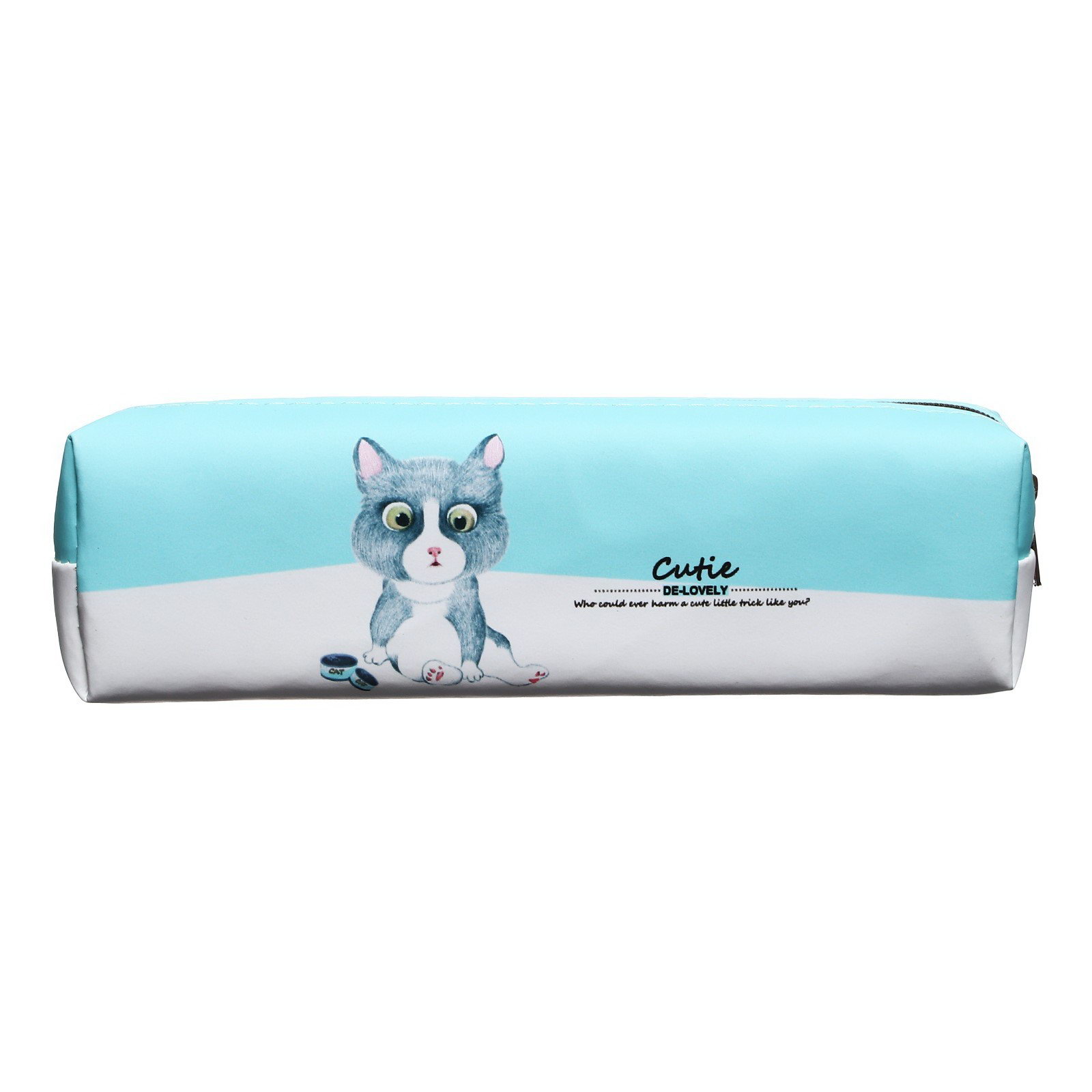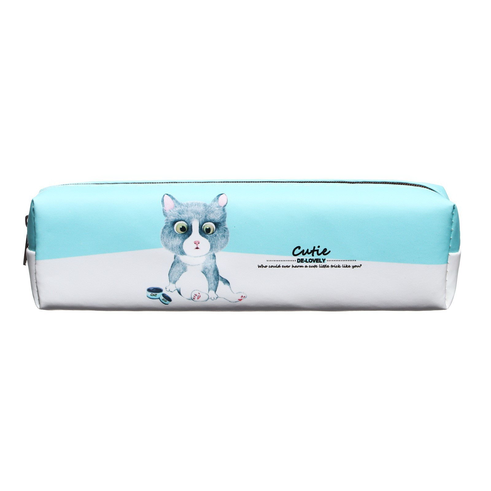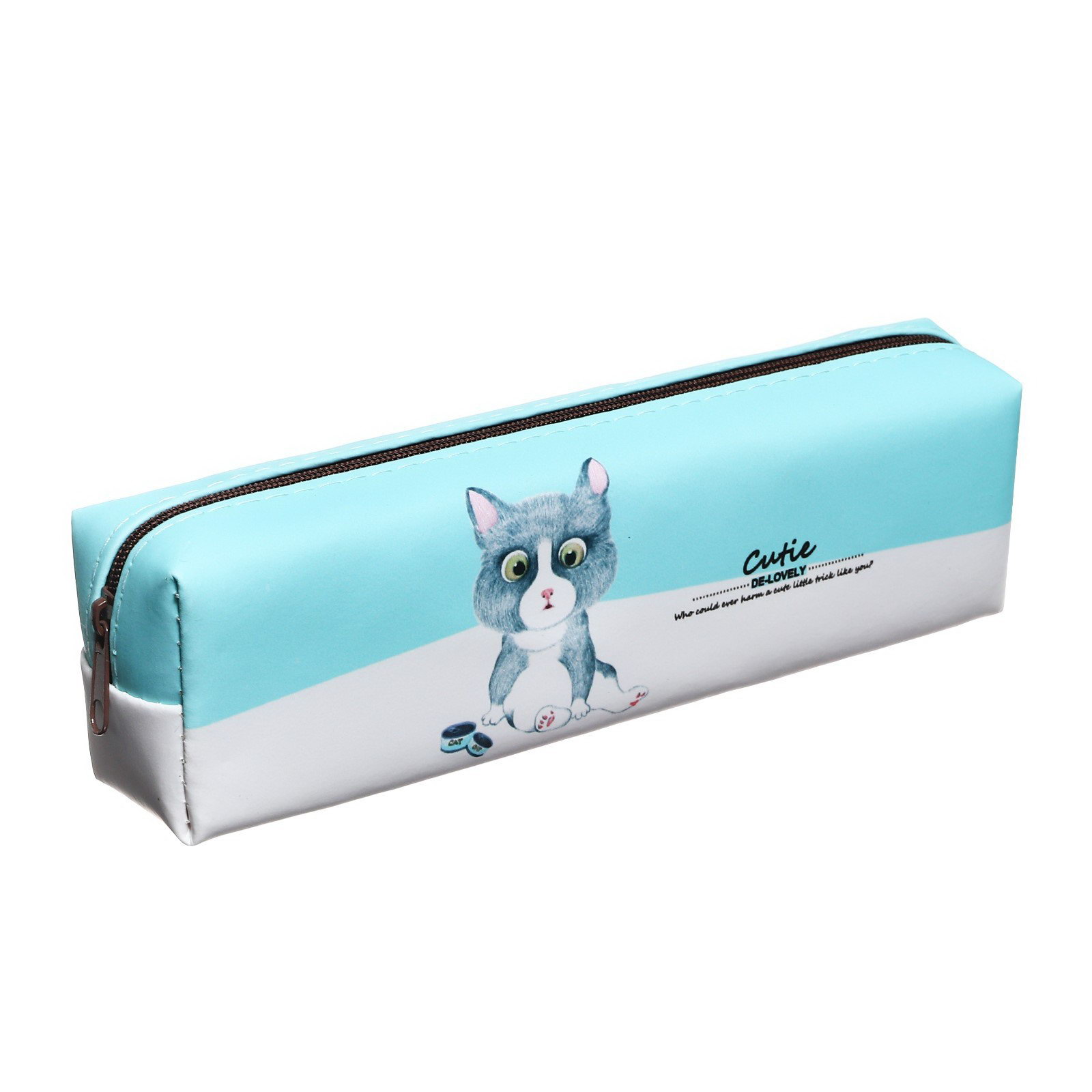 Пенал школьный "Кот", на молнии, голубой, Китай