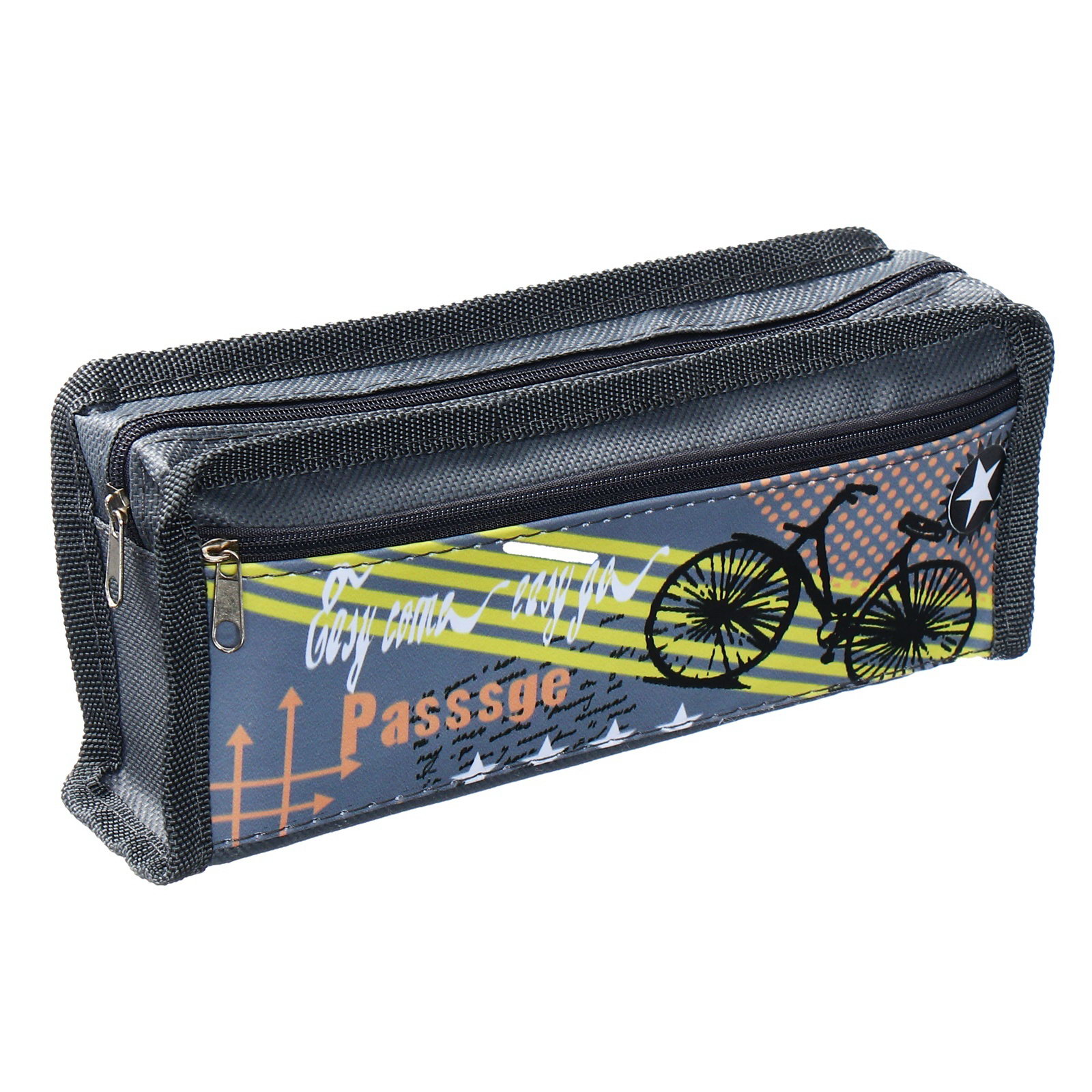 Пенал школьный на молнии "Спорт", 2 отделения, серый, 21x9x4.5 см., Calligrata, Китай