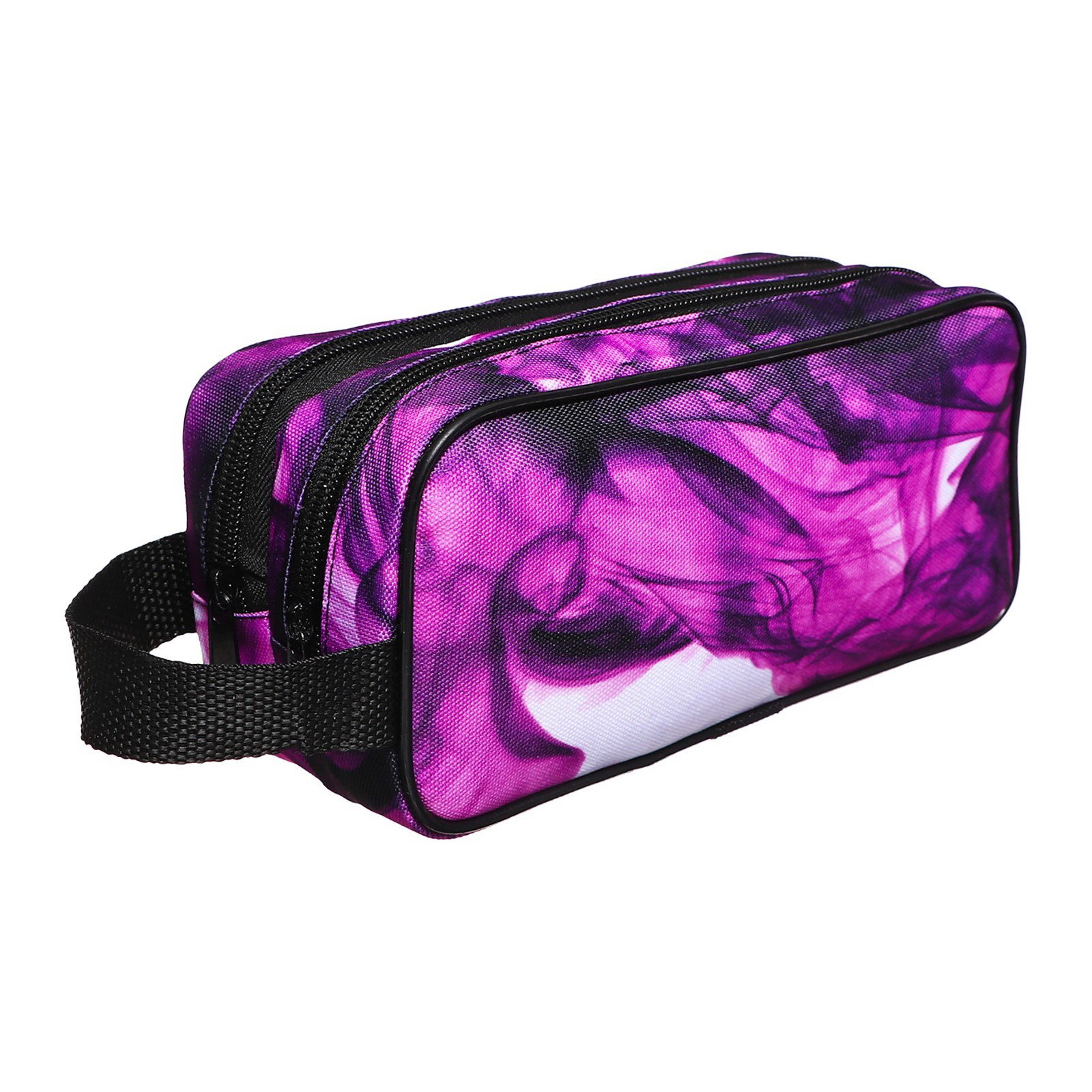 Пенал мягкий 2 отделения, 100 x 220 x 70 мм, объёмный, с ручкой, фиолетово-черный, 20.5x7x9.5 см., Calligrata, Китай