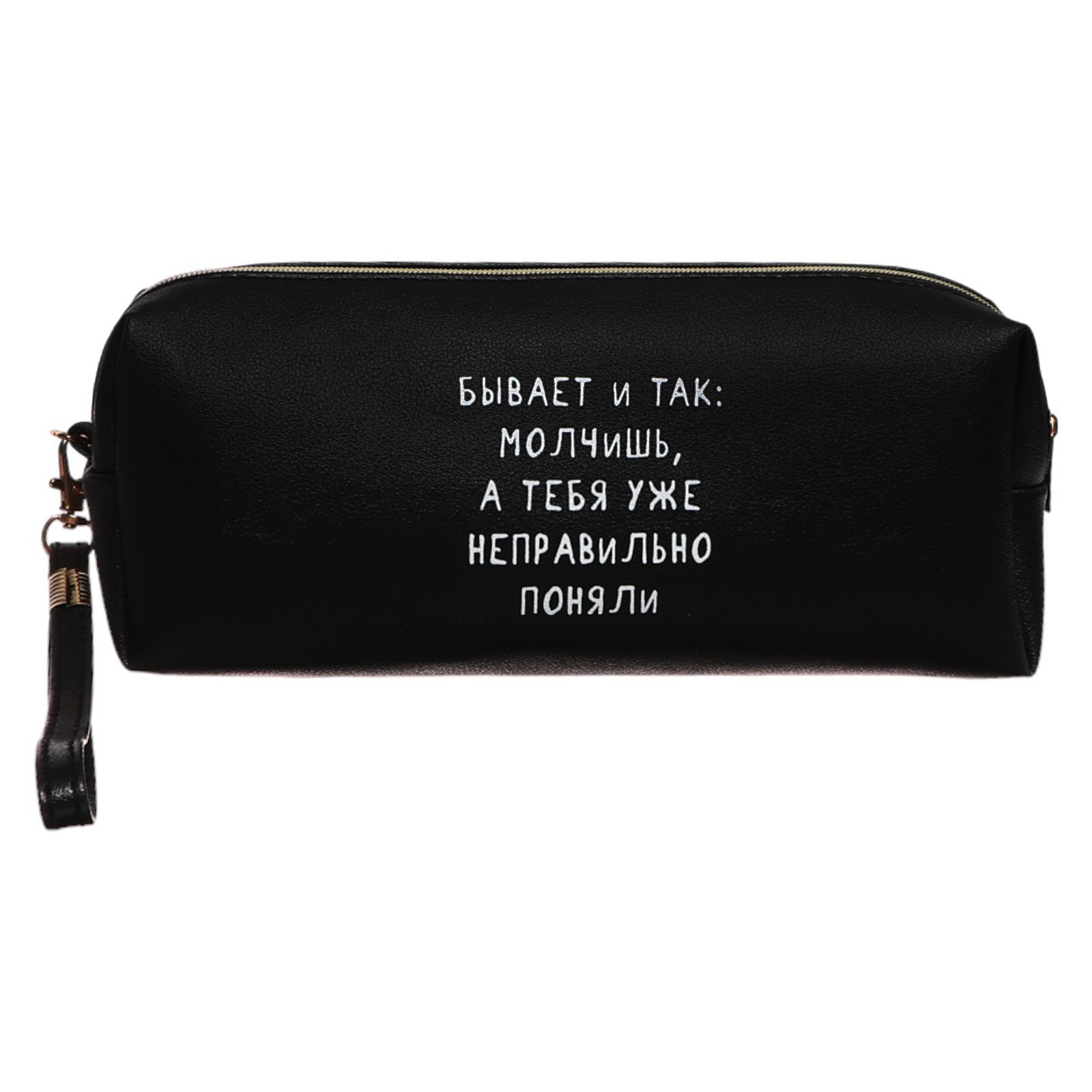 Пенал мягкий, 1 отделение, 80 x 215 x 50 мм, объемный, "Белым по чёрному", искусственная кожа с ручкой, МИКС, deVENTE, Китай