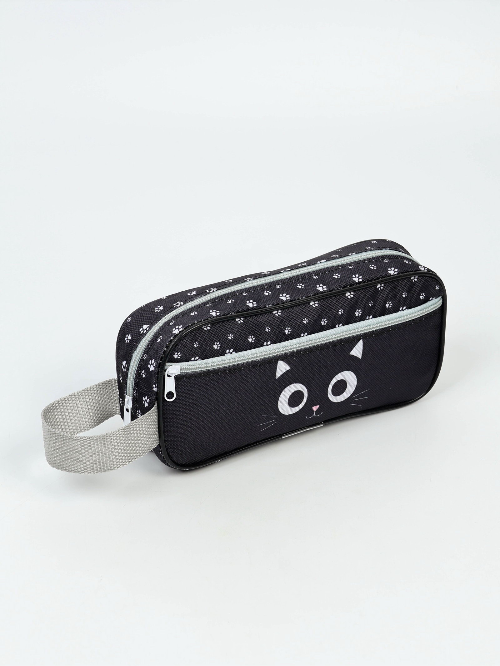 Пенал школьный, текстиль, 2 отделения, 22x10x7 см "Котик", 10x22x7 см., ArtFox STUDY, Китай