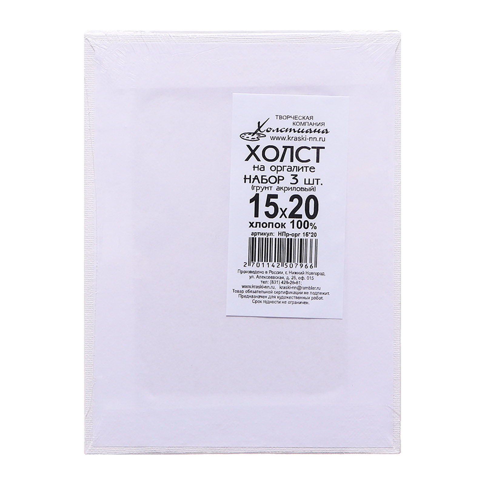 Холст на оргалите, хлопок 100%, 15x20 см, 4 мм, акриловый грунт, мелкое зерно 210 г/?2, в наборе 3 шт., Calligrata, Россия