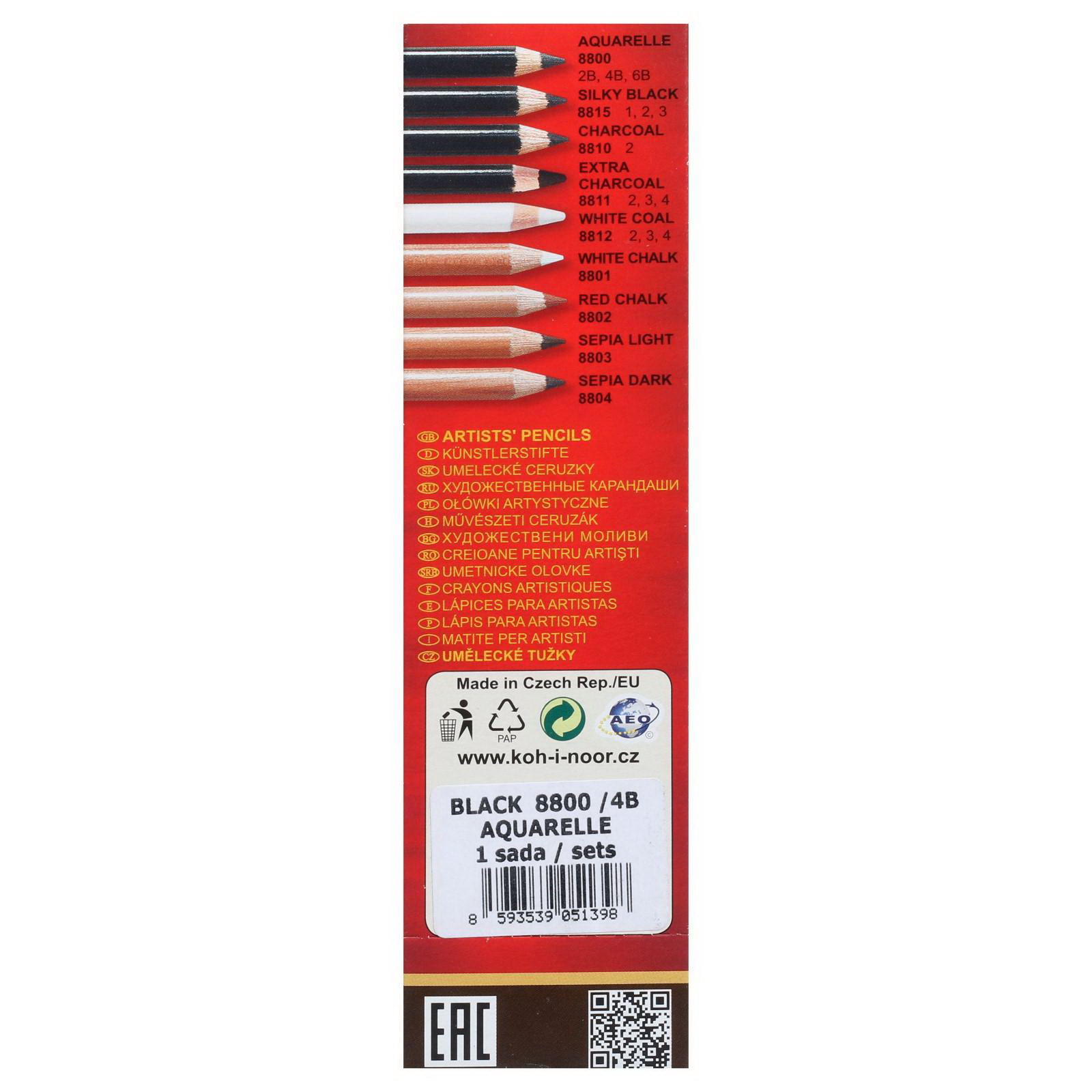 Карандаш художественный чернографитный акварельный 7.5 мм, GIOCONDA 8800 4 В, L=175 мм, 0.3x16x0.3 см., Koh-I-Noor, Чехия