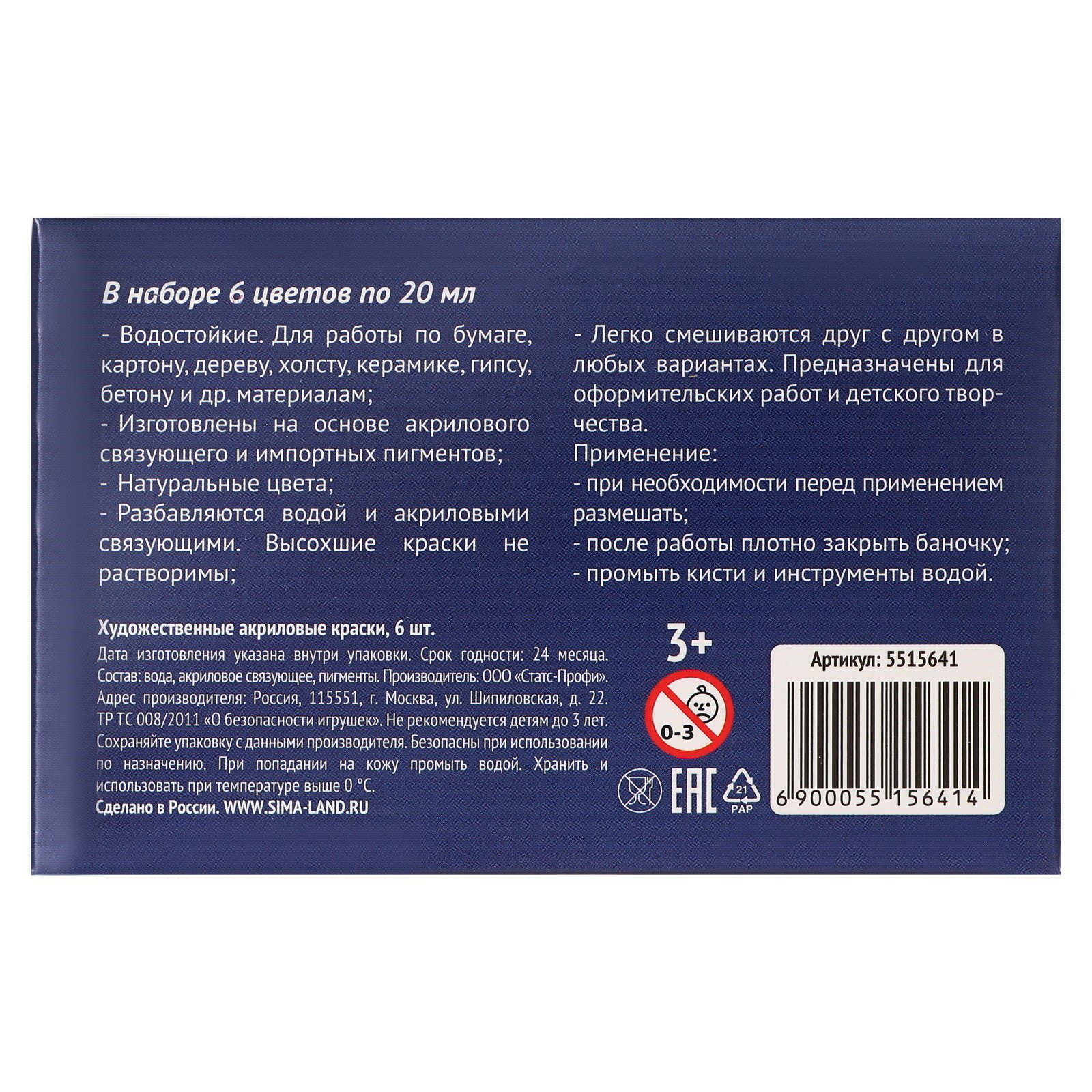 Краска акриловая, набор 6 цветов x 20 мл, Pearl перломутровые, морозостойкая, в картонной коробке, 20 мл., Calligrata, Россия
