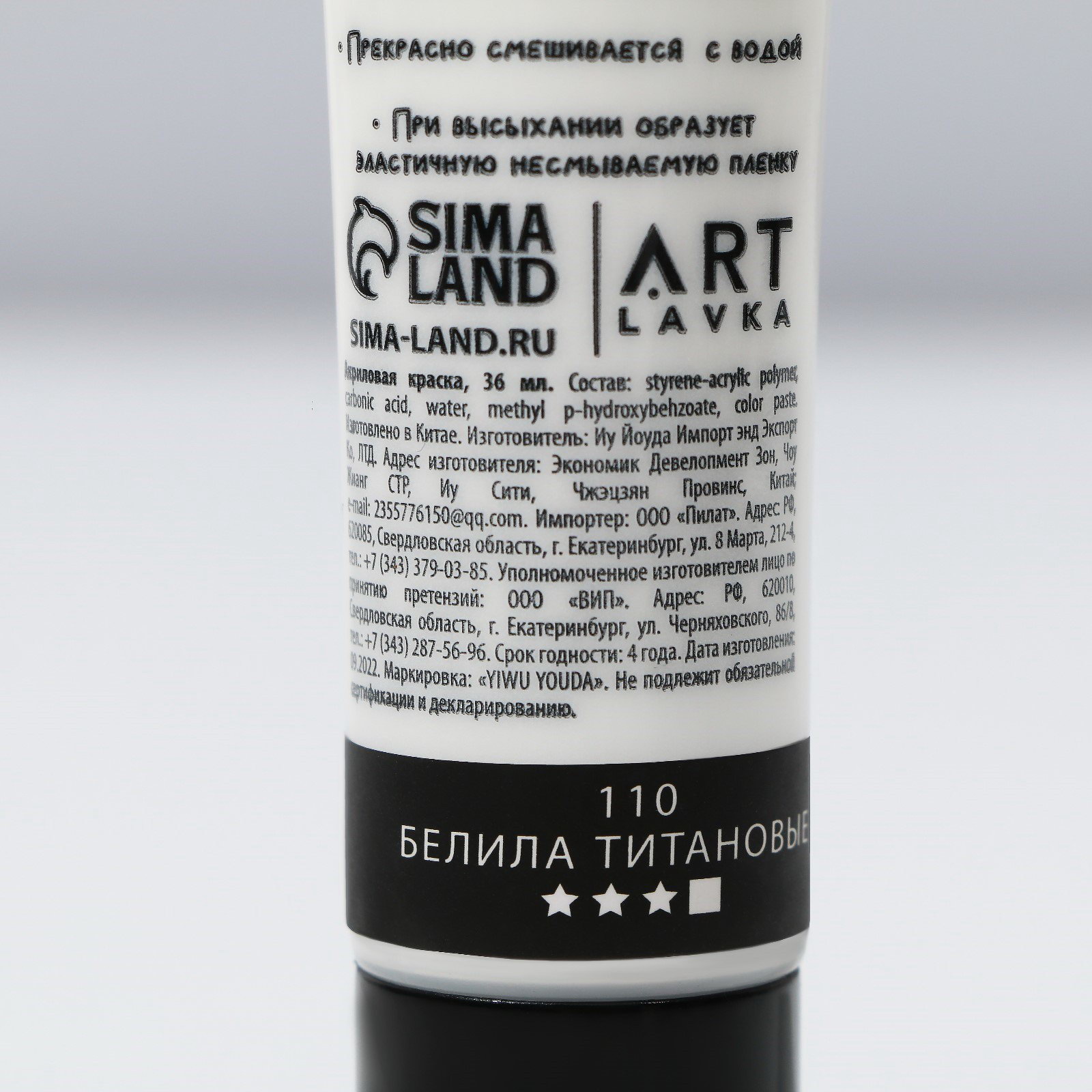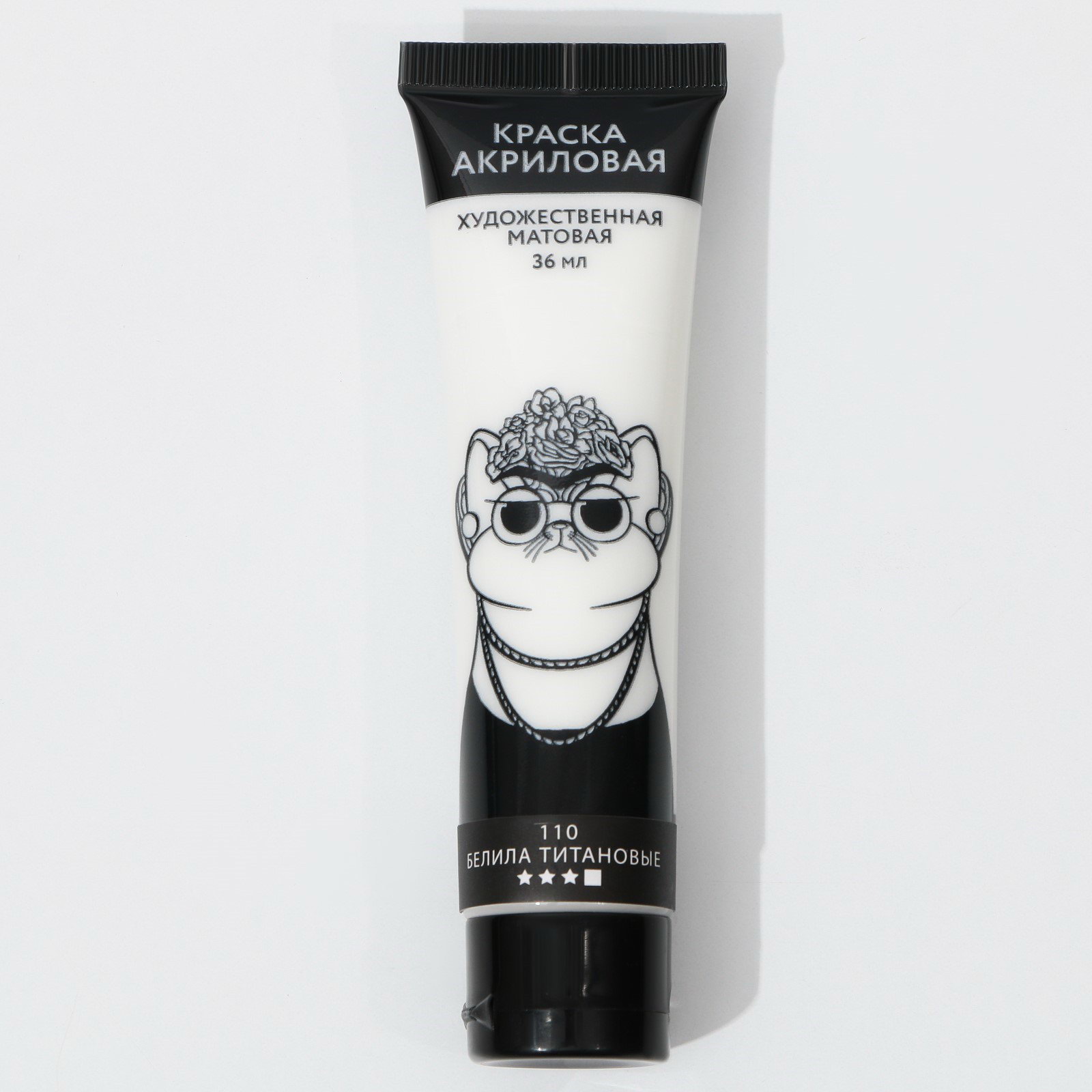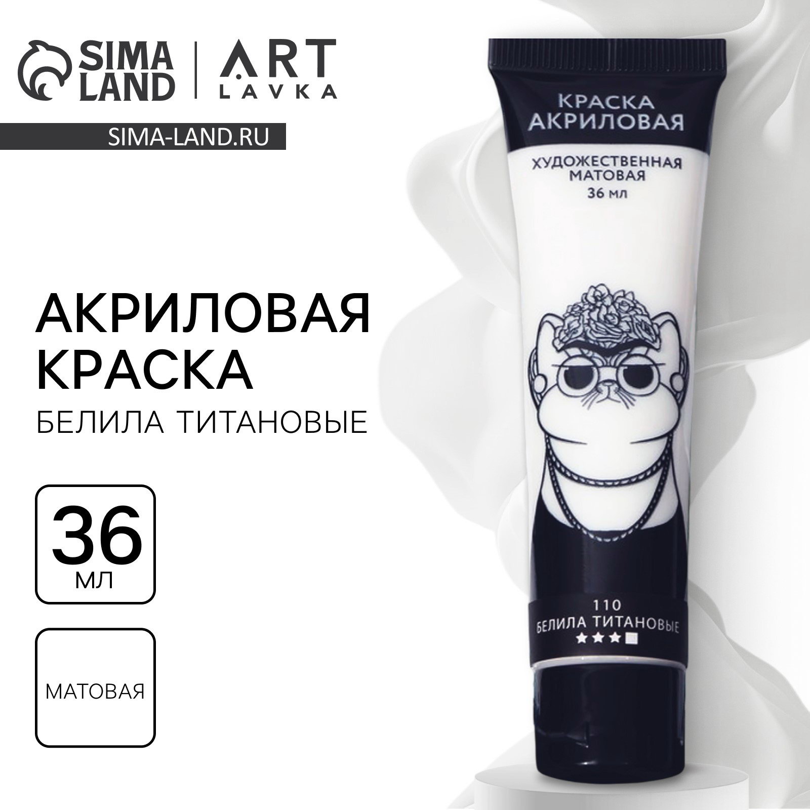 Акриловая краска, цвет белила титановые, № 110 в тубе, матовая 36 мл, 3.5x3.5x10.5 см., ARTLAVKA, Китай