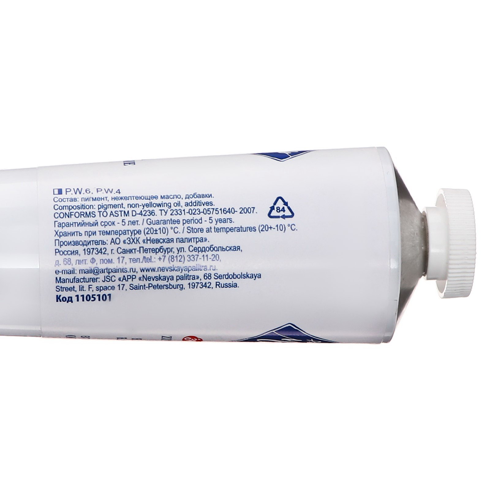 Краска масляная в тубе 120 мл, ЗХК "Мастер-класс", № 101, белила титановые, 1105101, 120 мл., Завод художественных красок «Невская палитра», Россия