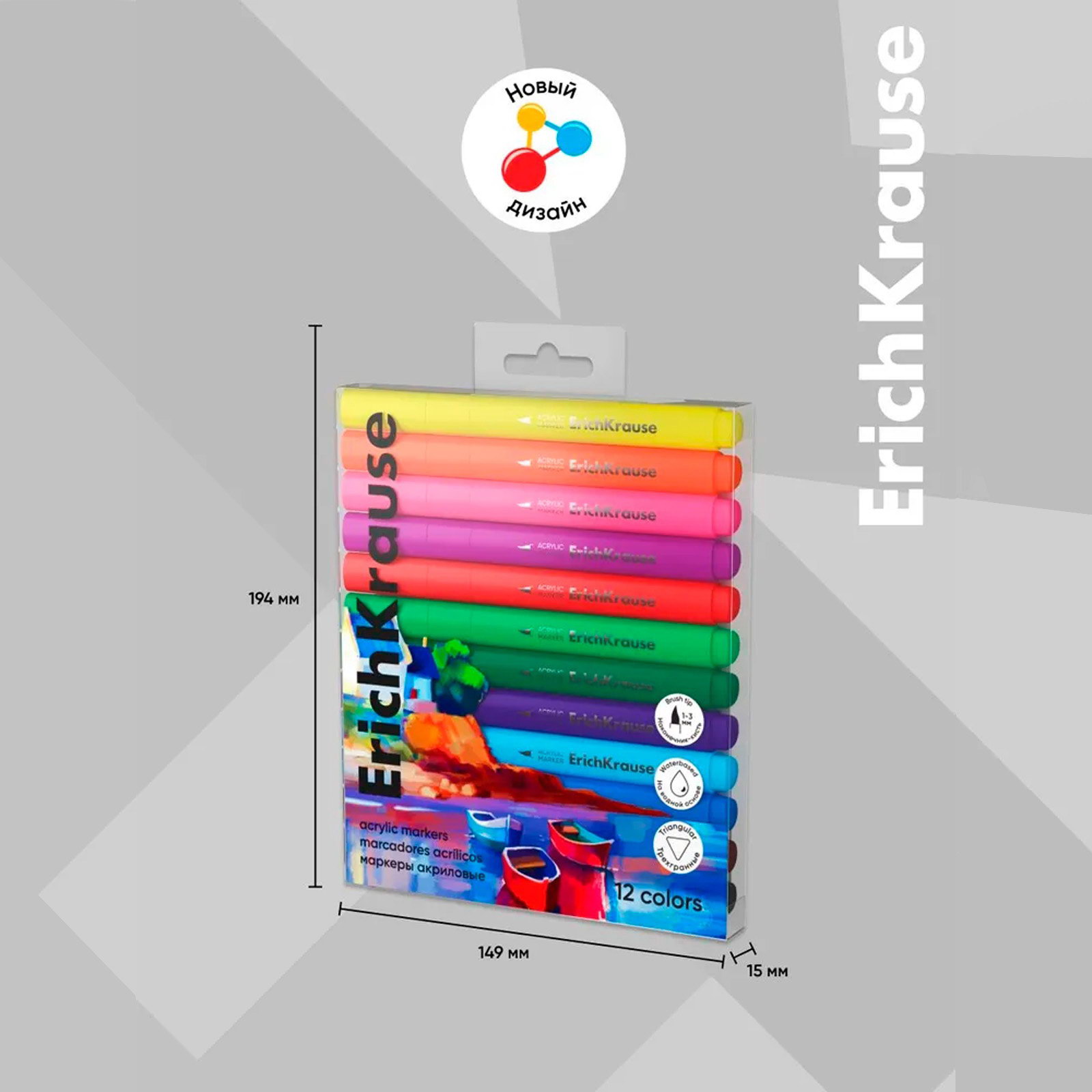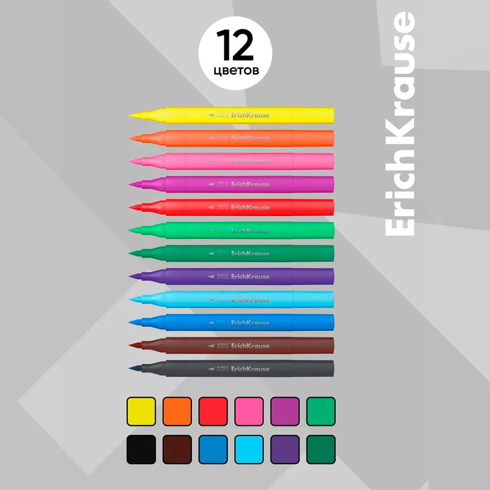 Маркеры акриловые 12 цветов, Art Spirit с наконечником кистью микс, 1.5x14.9x14.9 см., ErichKrause, Китай