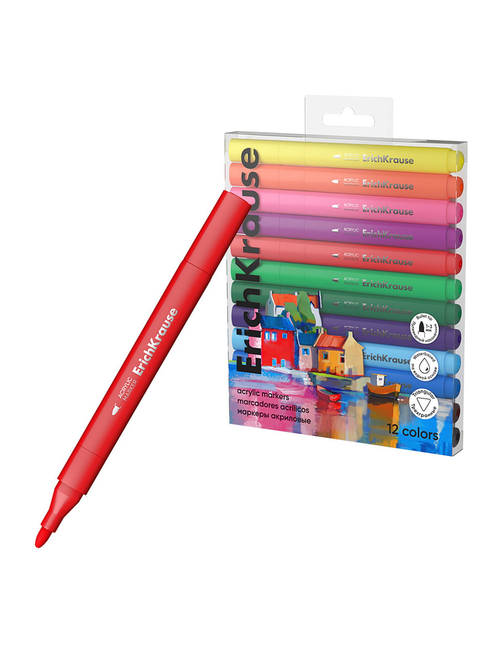 Набор акриловых маркеров. Art Spirit, 12 цветов, c пулевидным наконечником, МИКС, 1.5x14.9x19.4 см., ErichKrause, Китай
