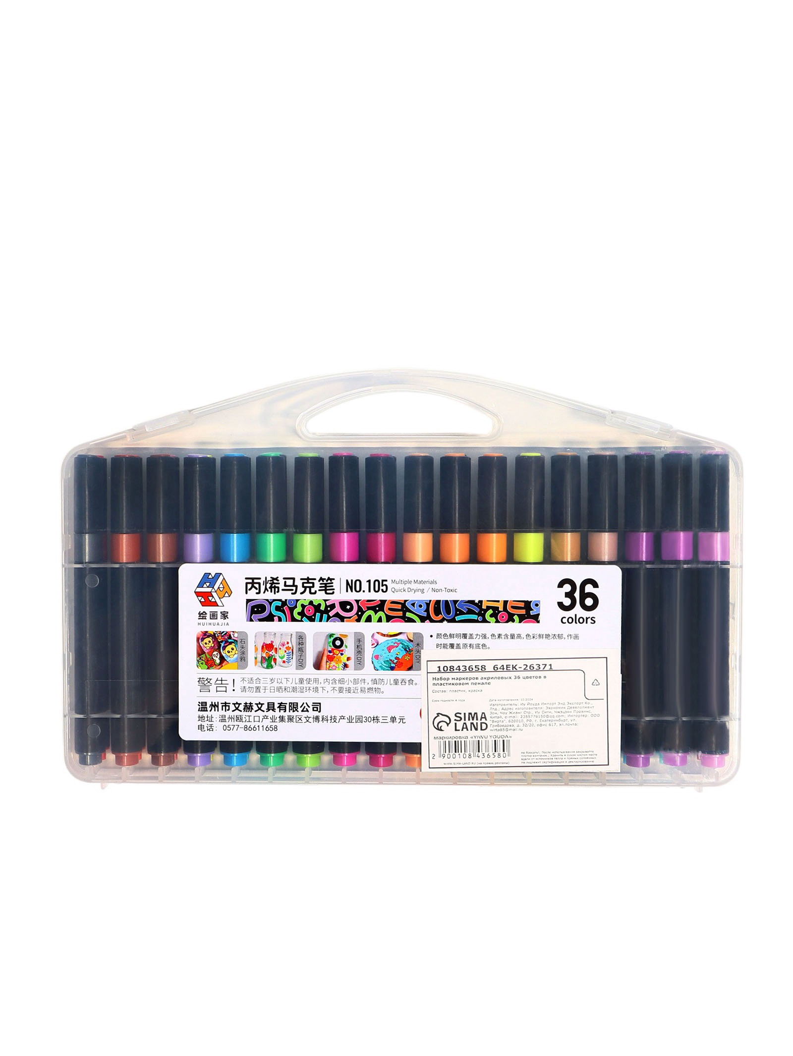 Набор маркеров акриловых, 36 цветов, в пластиковом пенале, 17x27.7x3 см., Китай