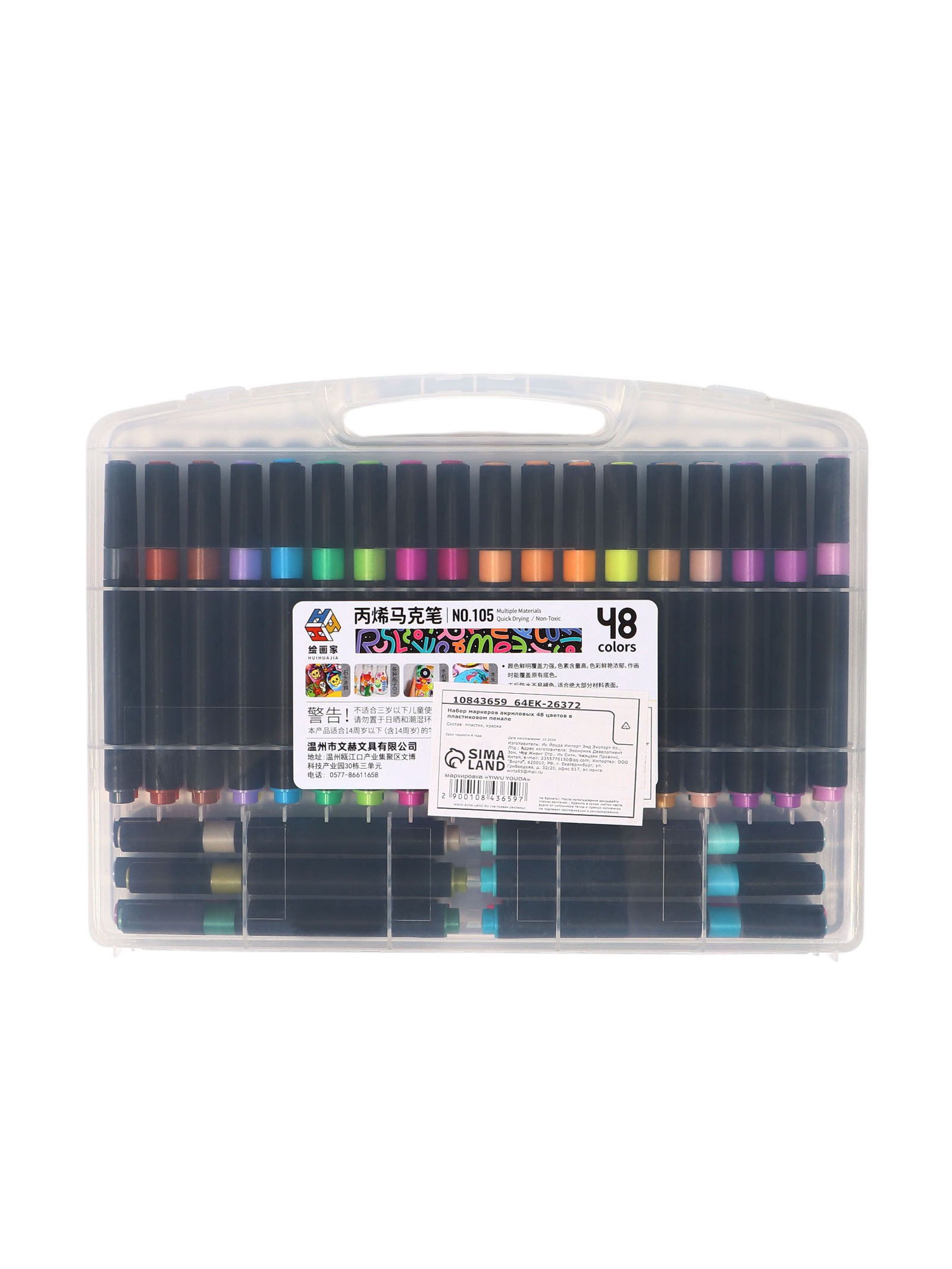 Набор маркеров акриловых, 48 цветов, в пластиковом пенале, 22x29x3 см., Китай