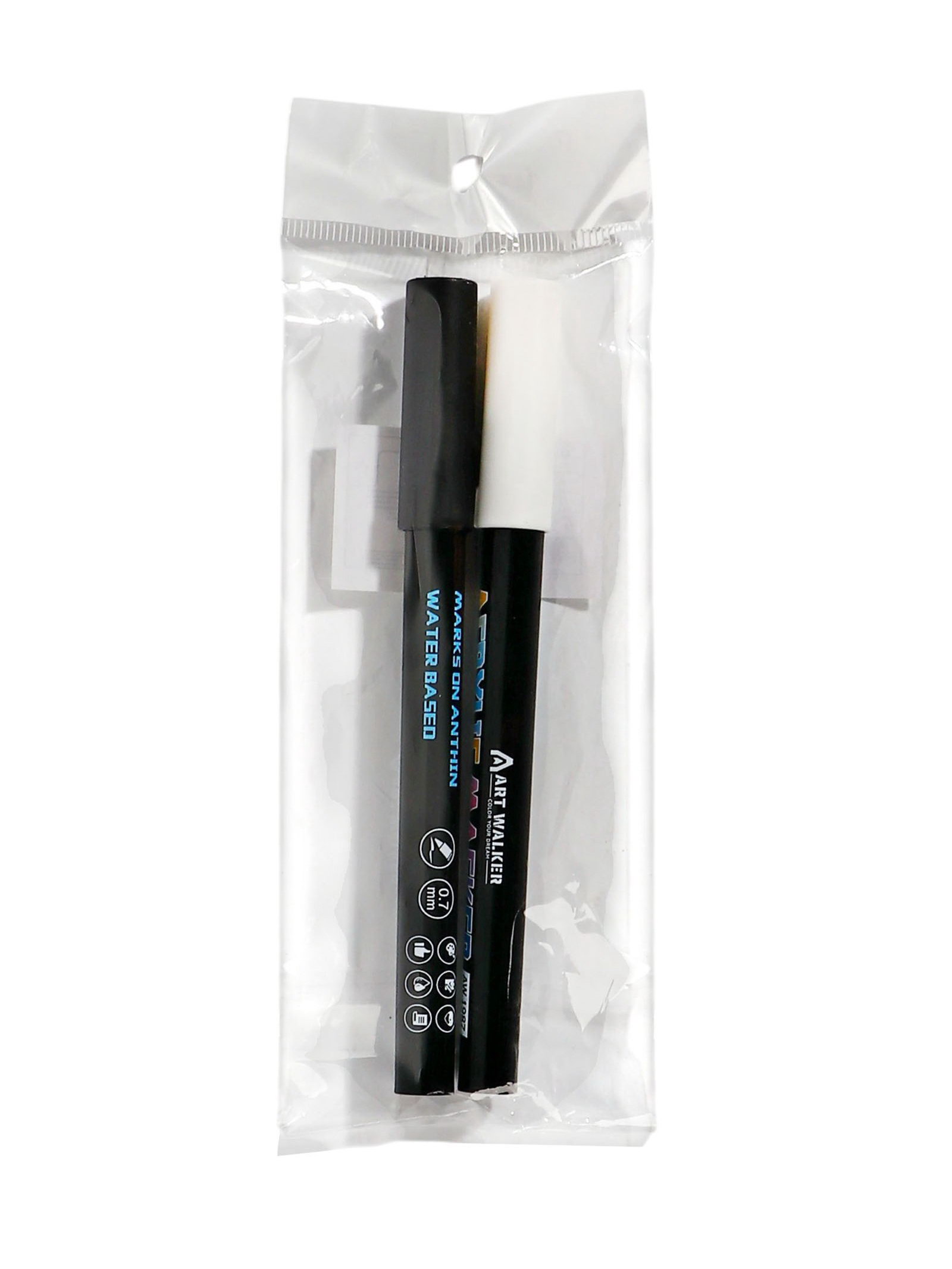 Набор акриловых маркеров 2 штуки, конусный наконечник 0.7 мм, черный, белый, 3x14.5x1.2 см., Китай
