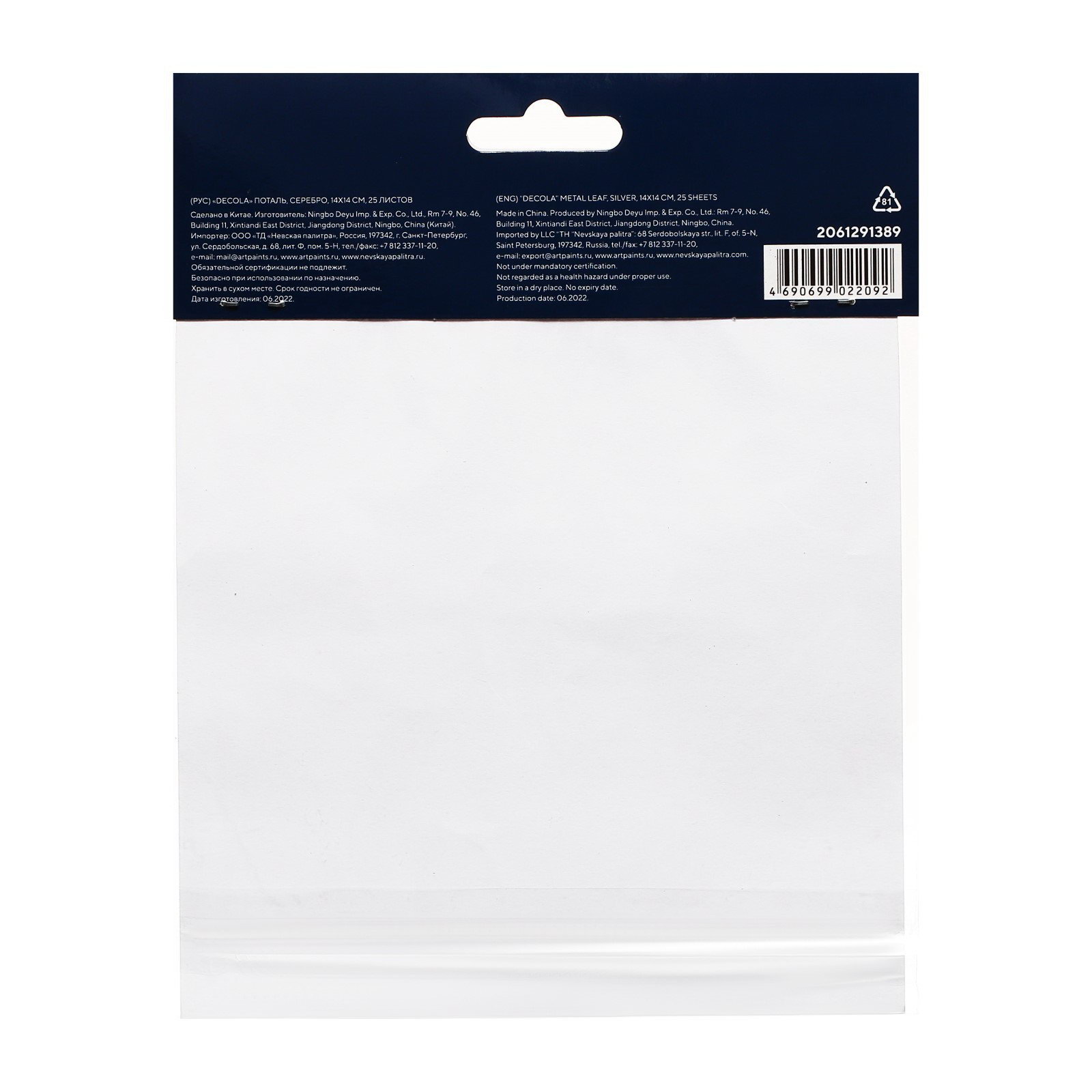 Поталь в книжке для серебрения ЗХК "Decola", 14 x 14 см, 25 листов, имитация серебра,, Завод художественных красок «Невская палитра», Китай