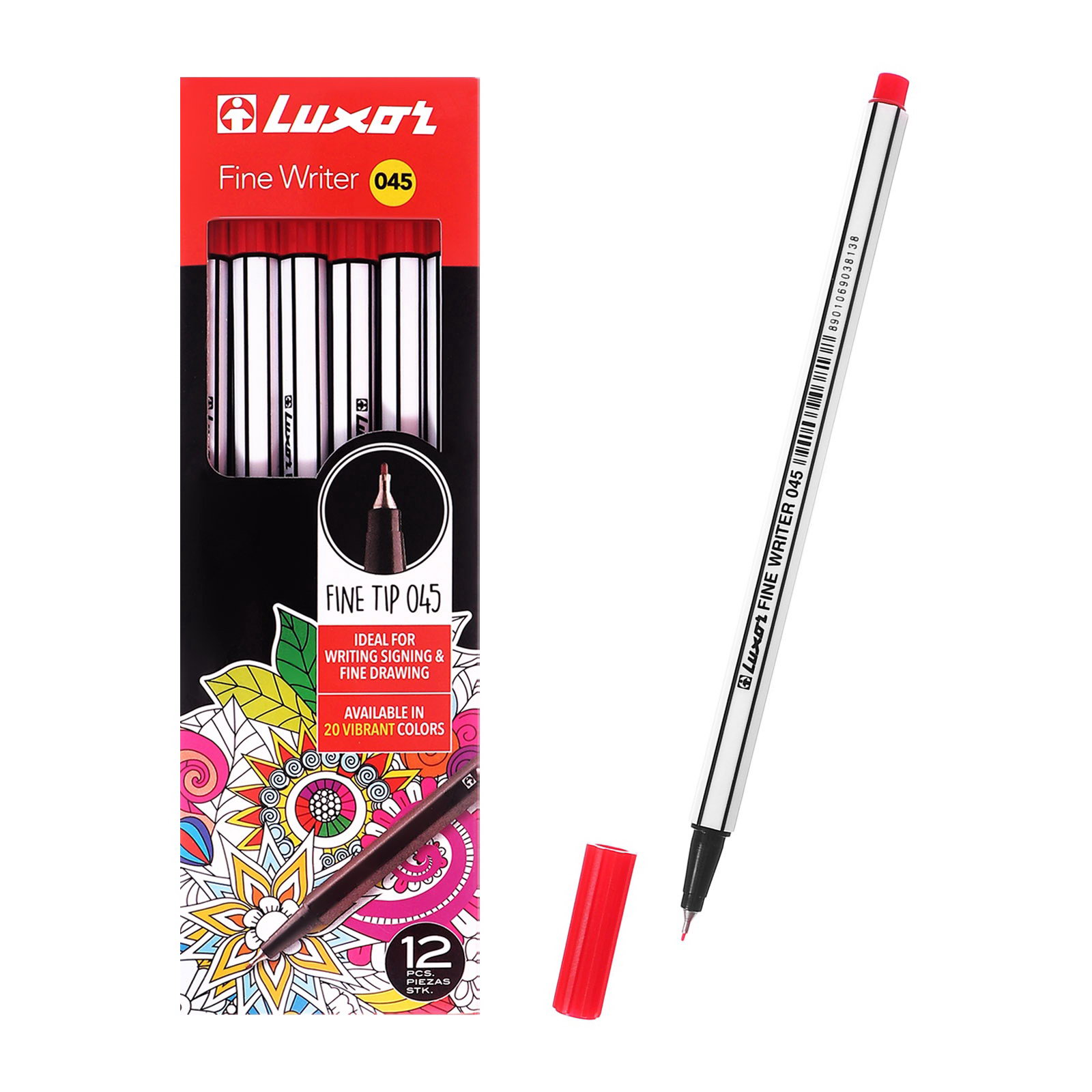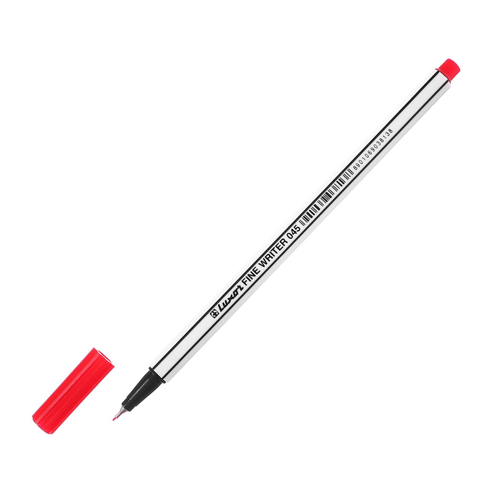 Ручка капиллярная Fine Writer 045, узел 0.8 мм, чернила красные, корпус чёрно-белый, Luxor, Индия