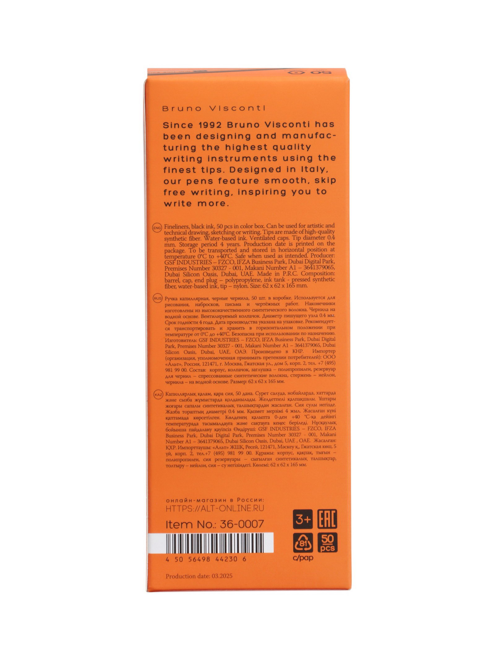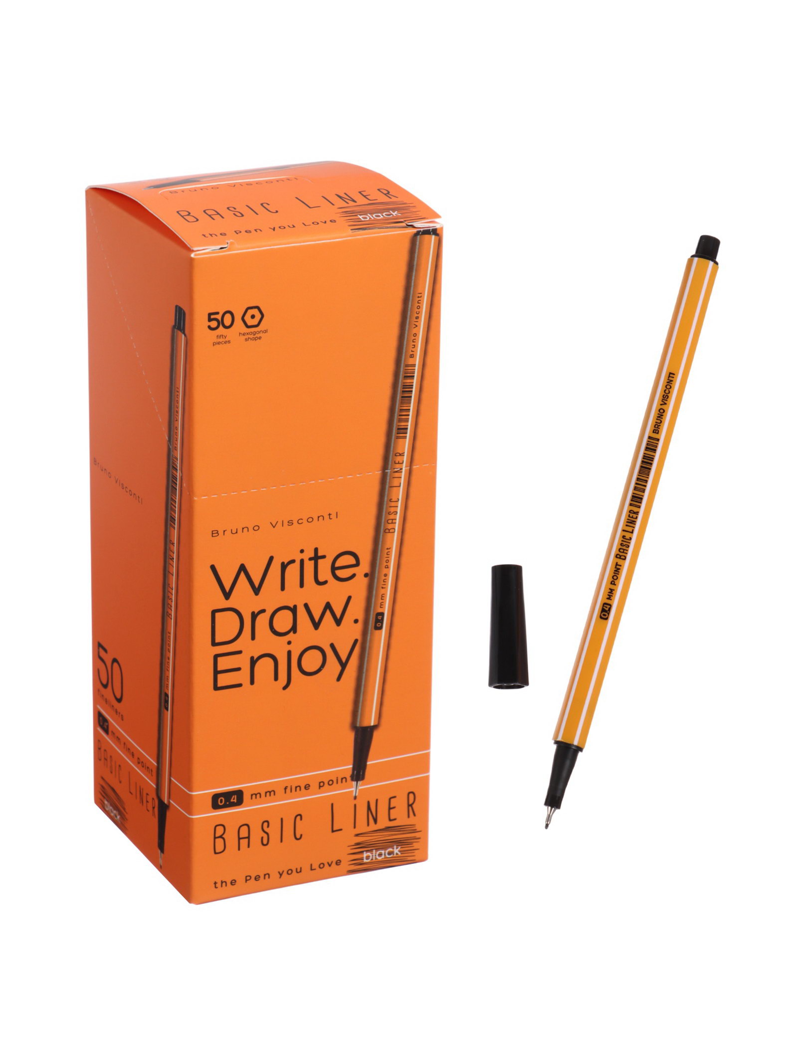 Ручка капиллярная Basic FINELINER, узел 0.4 мм, стержень чёрный, 1x1x16.5 см., BrunoVisconti, Китай