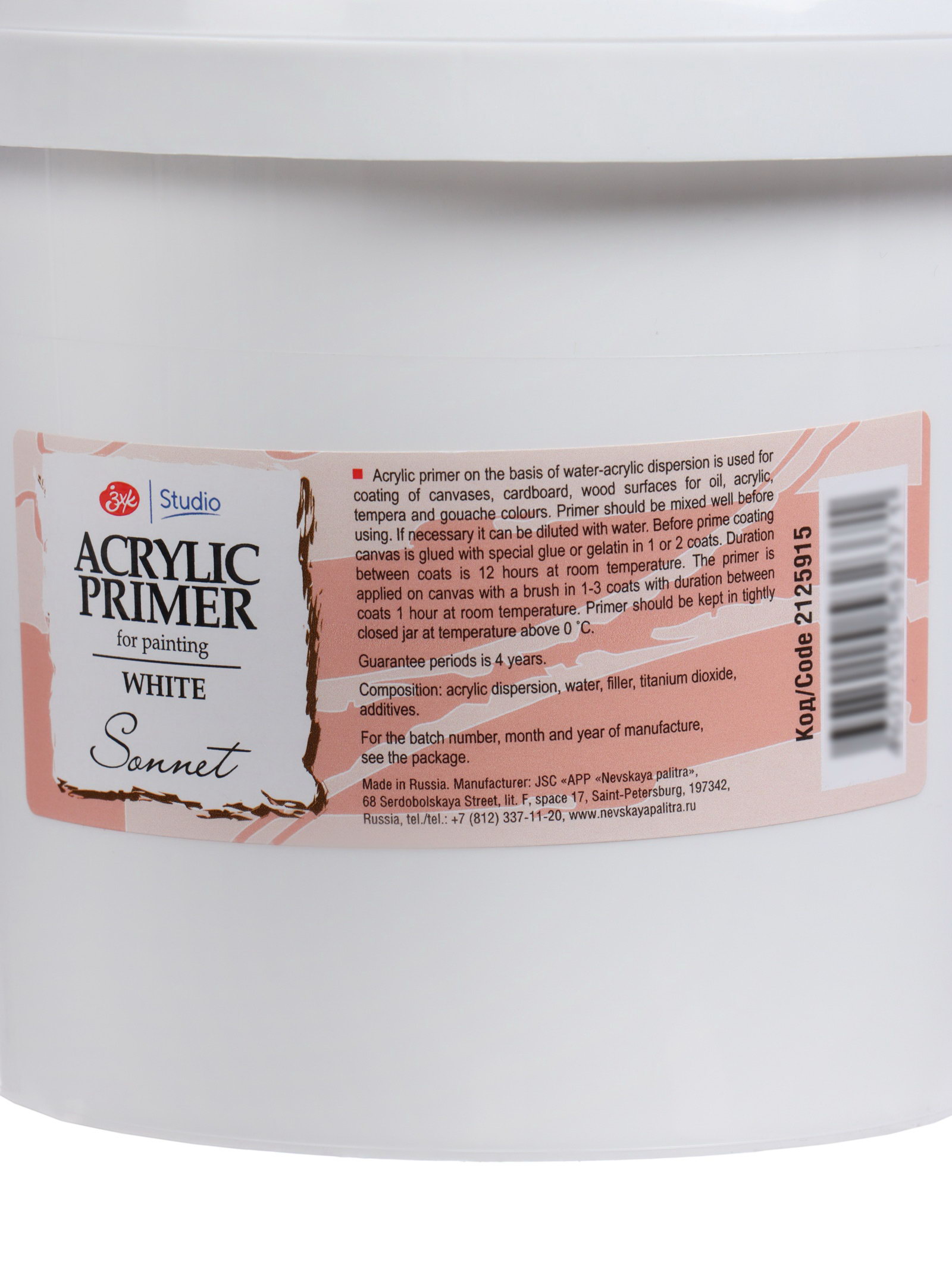 Грунт художественный акриловый "ЗХК. Сонет", 1420 г, Завод художественных красок «Невская палитра», Россия