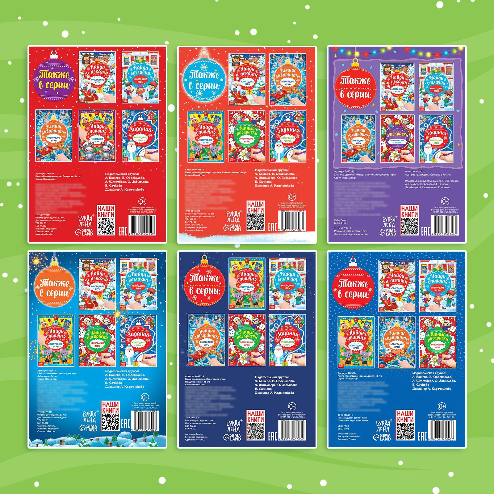 Книги с заданиями "Новогодние игры", набор 6 шт. по 16 стр., 0.8x21.5x15 см., БУКВА-ЛЕНД, Россия