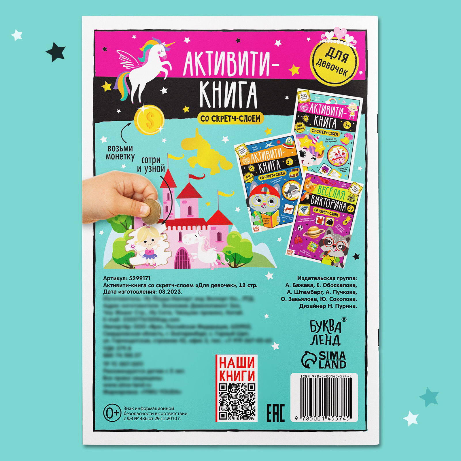Активити-книга со скретч-слоем "Для девочек", 12 стр., 0.2x21x15 см., БУКВА-ЛЕНД, Китай
