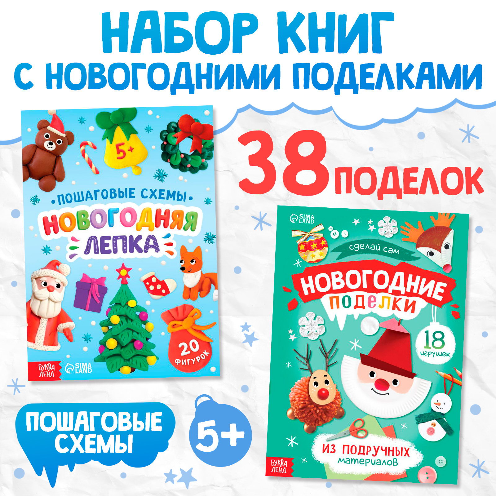 Книги с пошаговыми схемами "Новогодние поделки и лепка", набор 2 шт., 5+, БУКВА-ЛЕНД, Россия