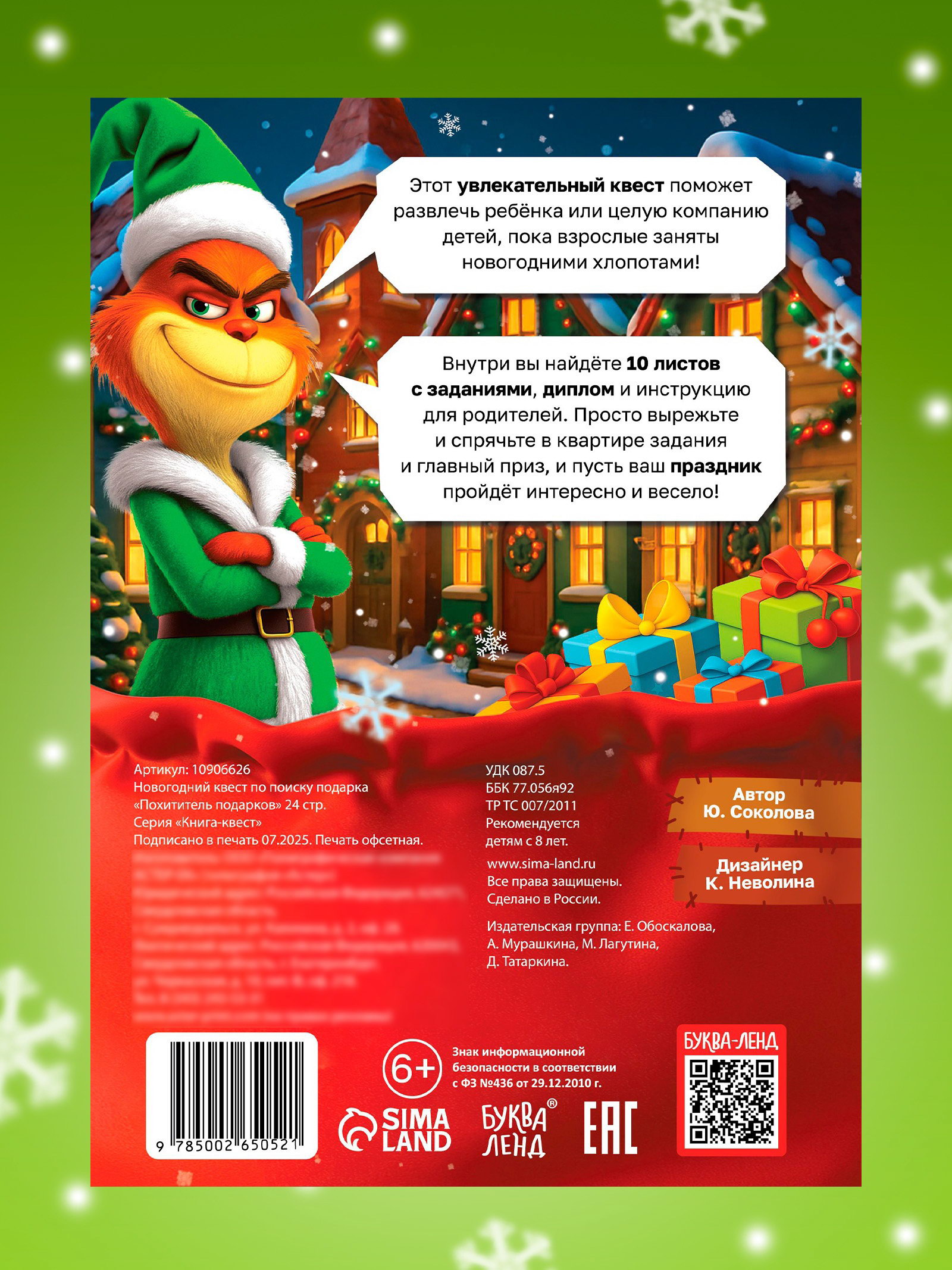 Книга - квест новогодняя "Похититель подарков", 24 стр., 8+, 17x0.5x24 см., БУКВА-ЛЕНД, Россия