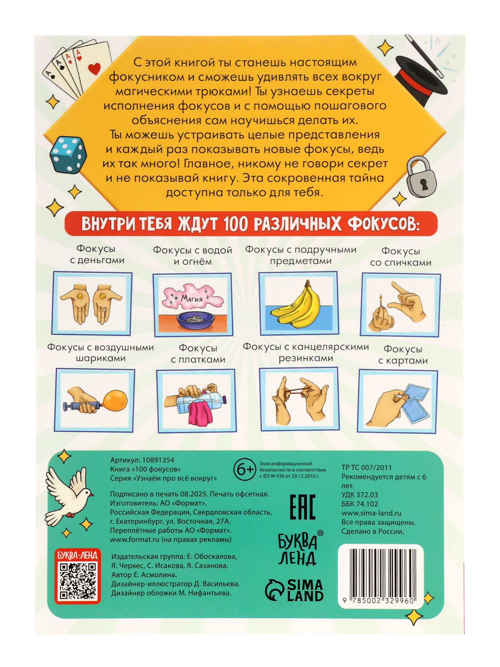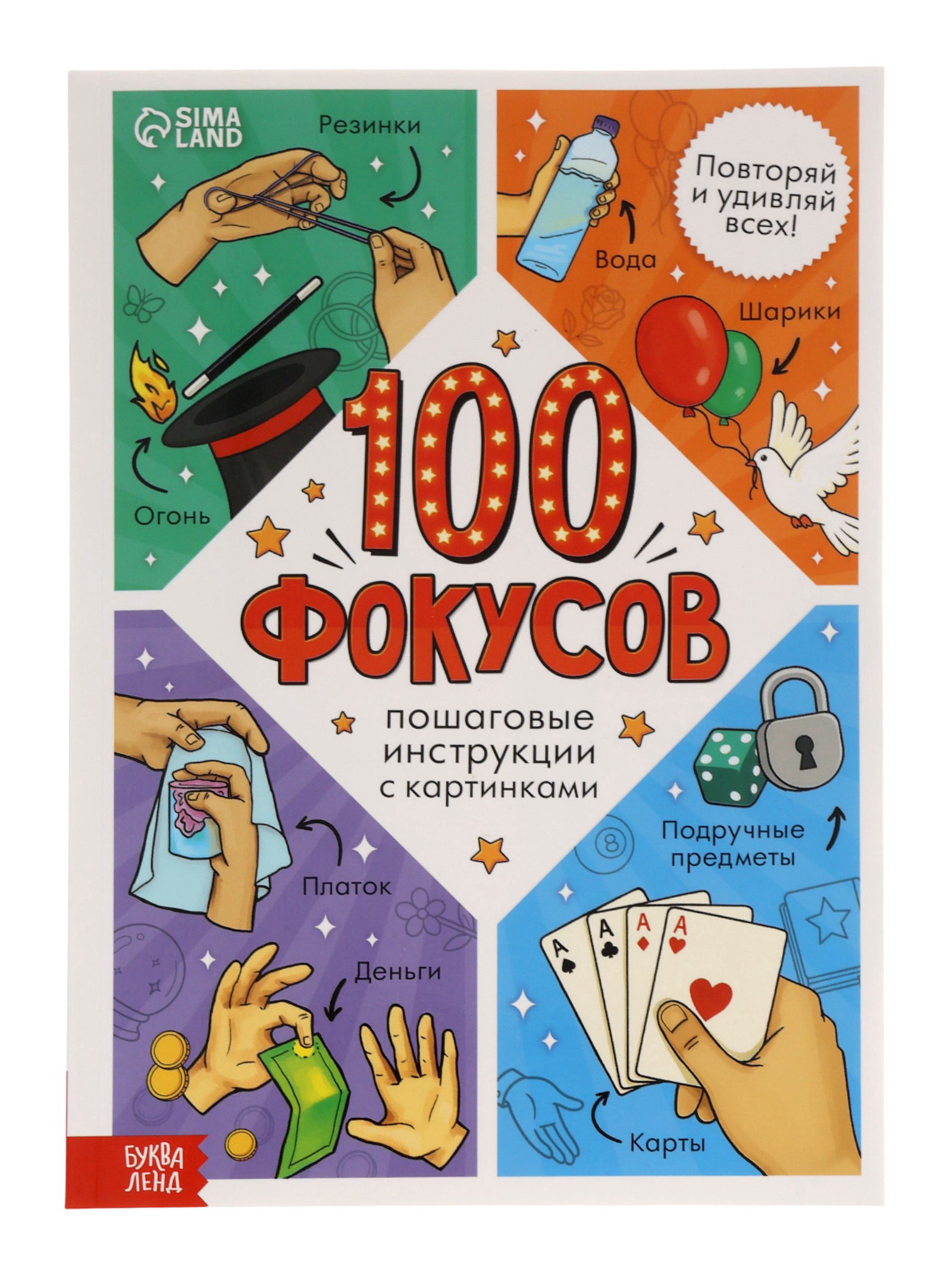 Книга детская "100 фокусов", пошаговые инструкции, 28x20x1 см., БУКВА-ЛЕНД, Россия