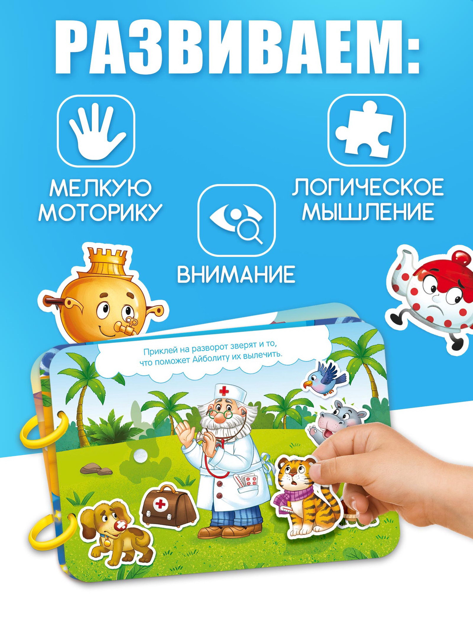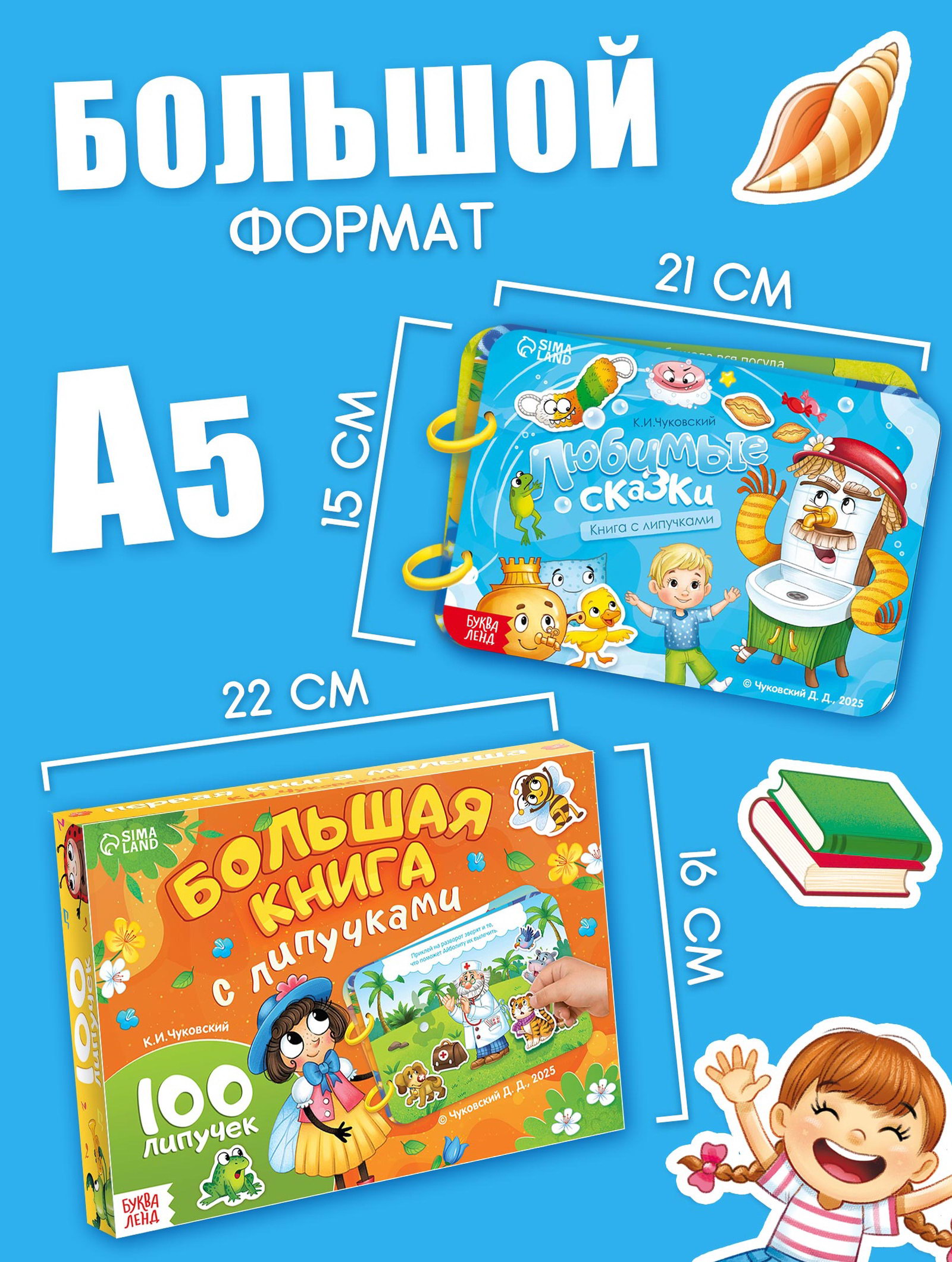 Большая книга с липучками "Любимые сказки", 100 липучек, А5, Корней Чуковский, 16x22x4 см., БУКВА-ЛЕНД, Китай
