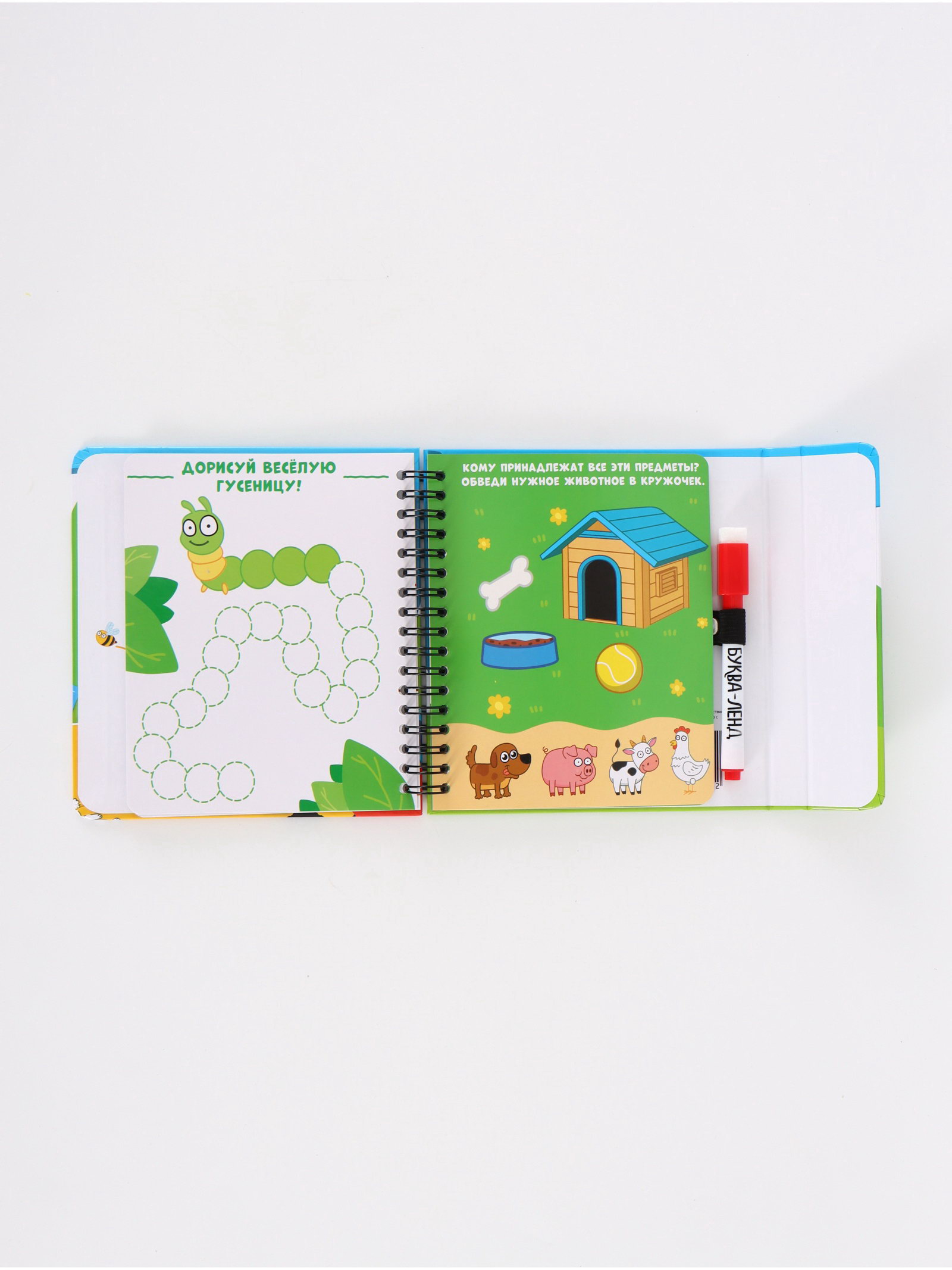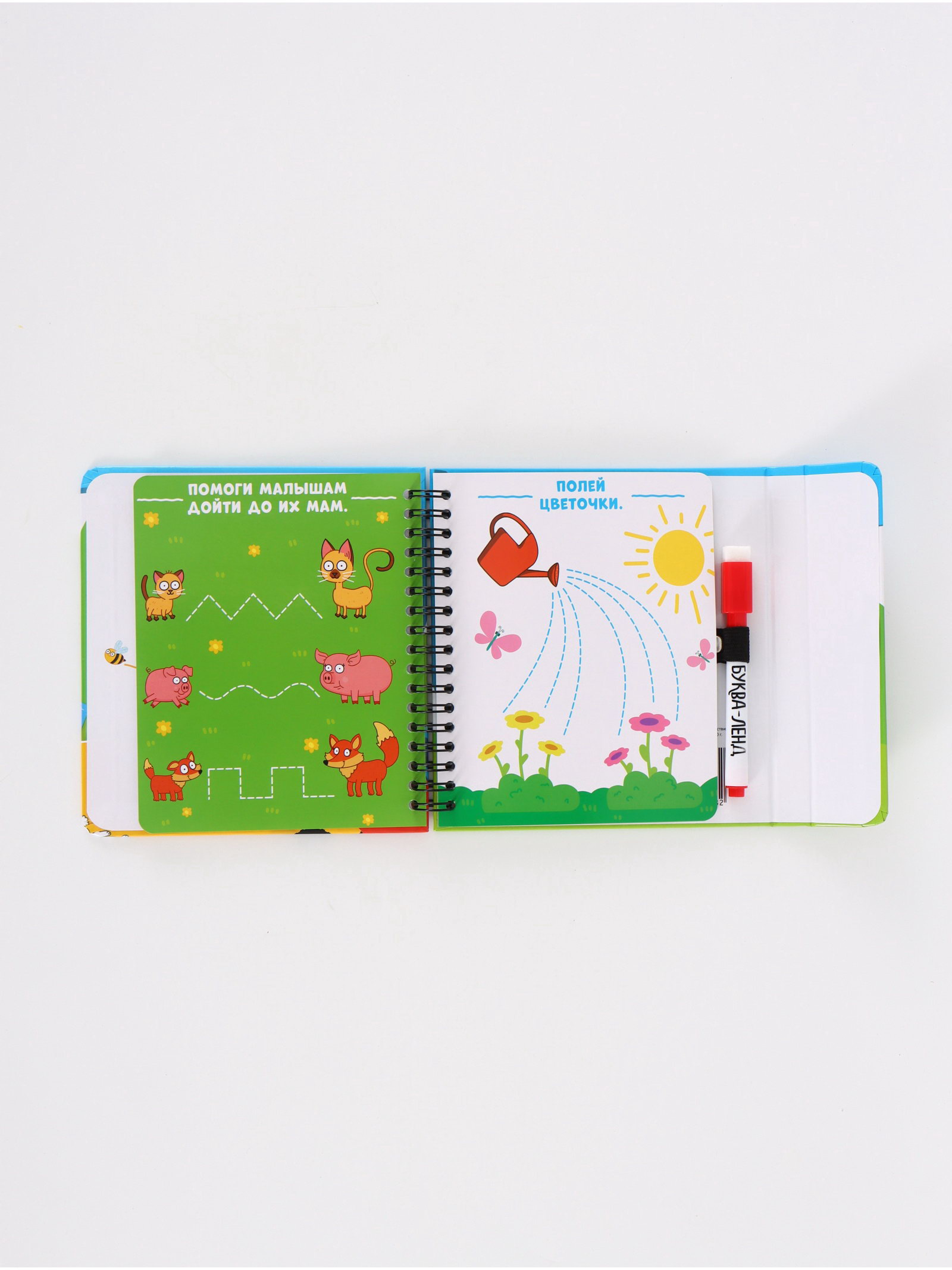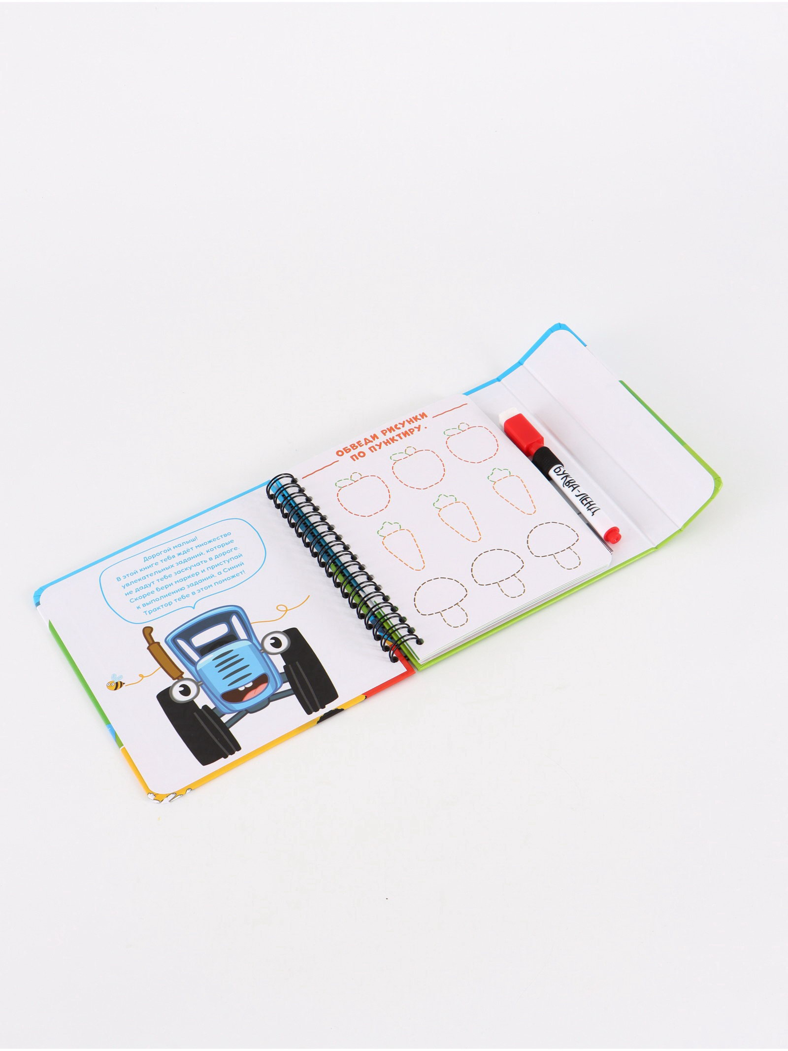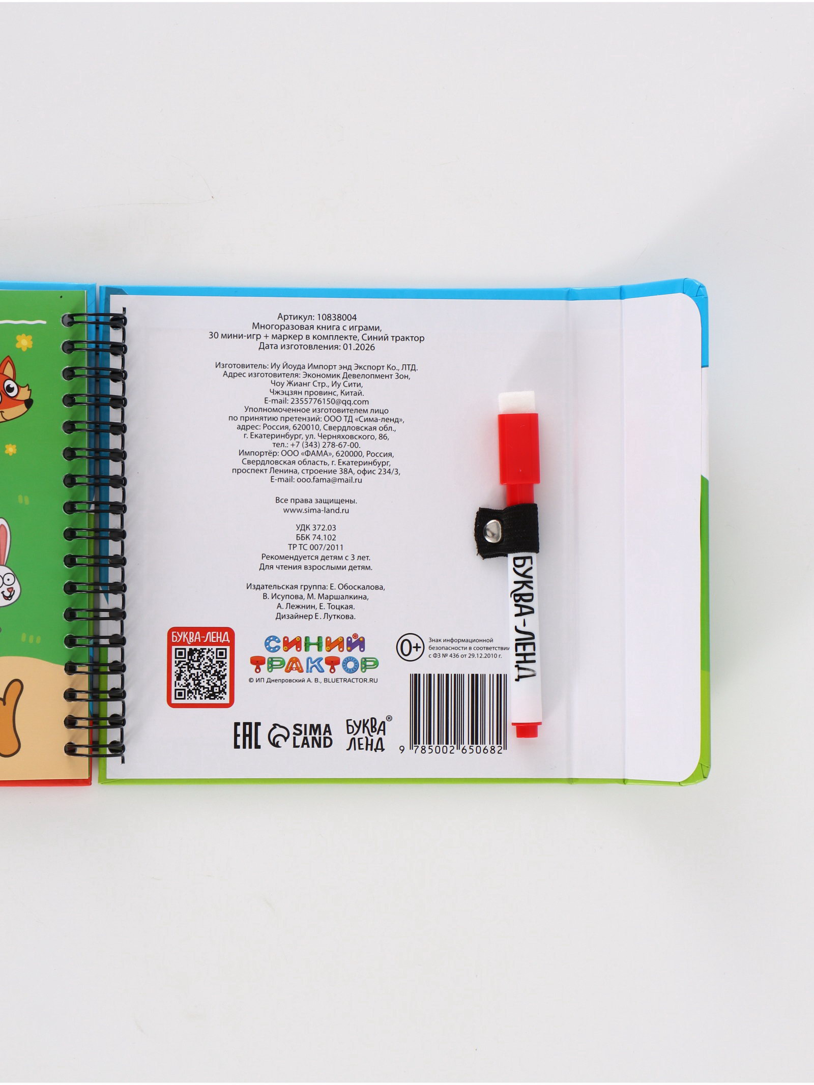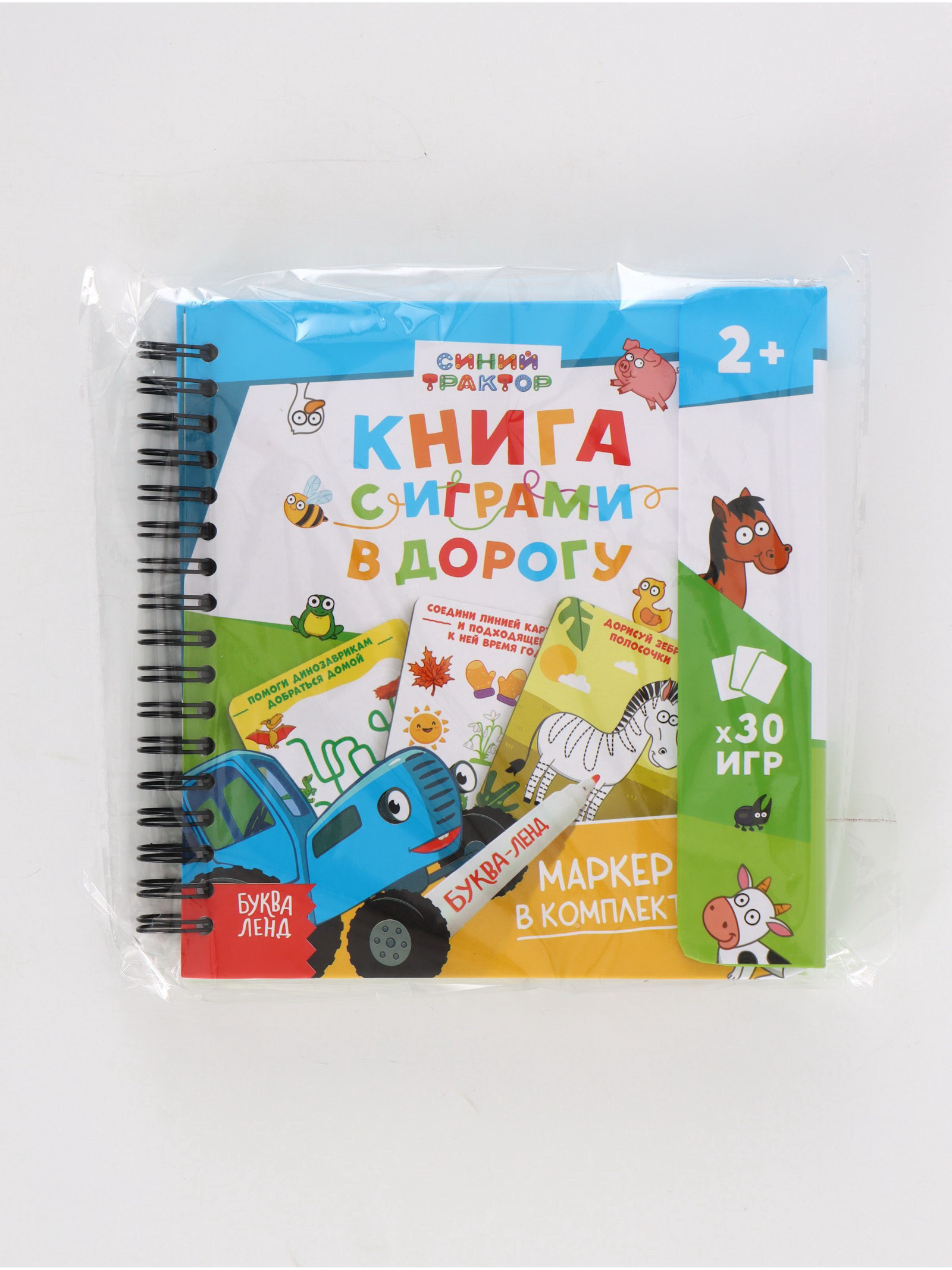Многоразовая книга с играми 30 мини-игр + маркер, 16x16x1 см., Синий трактор, Китай