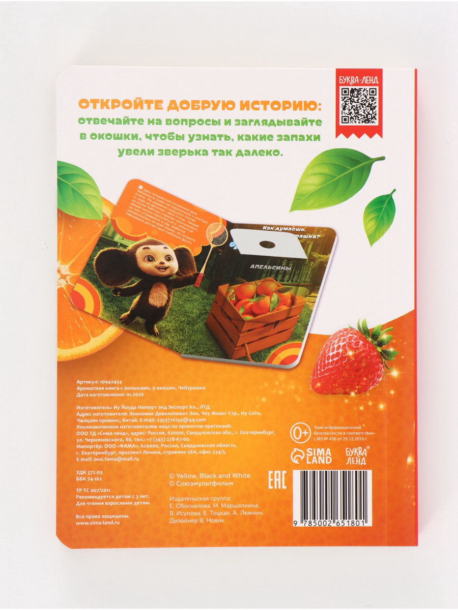 Ароматная книга с окошками 9 окошек, 17x0.2x22.5 см., ЧЕБУРАШКА, Китай